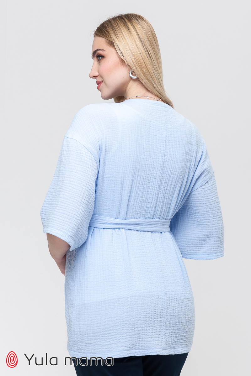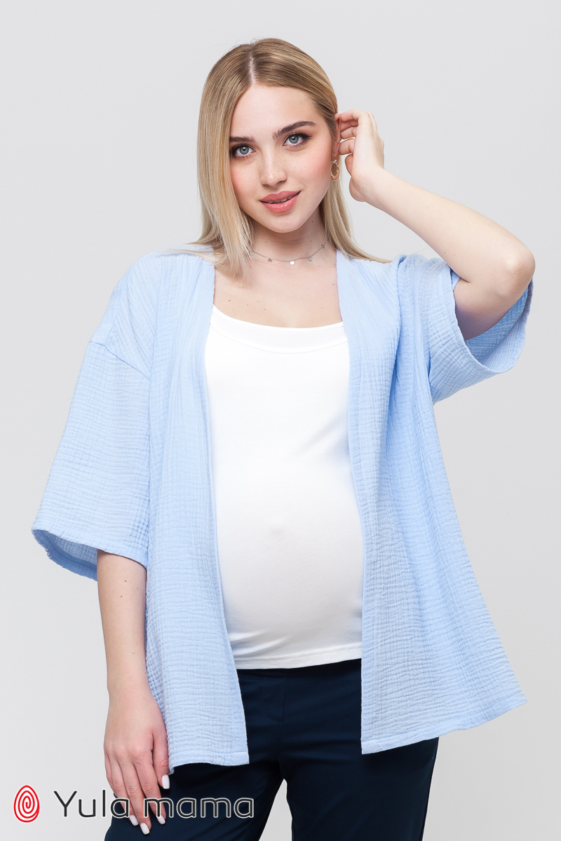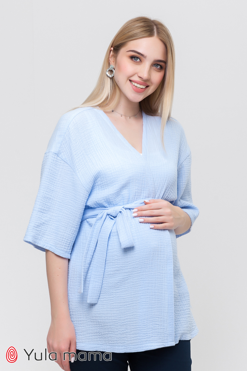 Легка туніка-кардиган з поясом для вагітних та годуючих з мусліну.