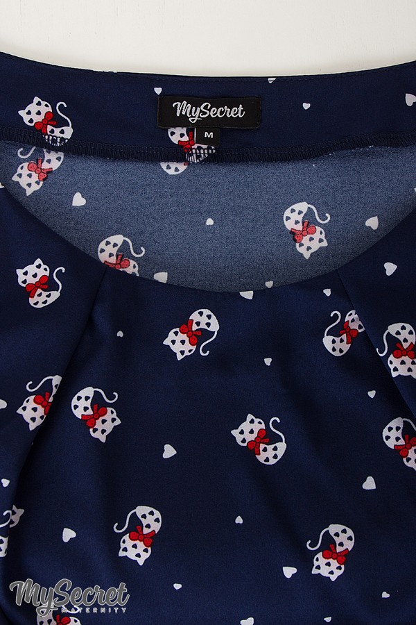 Стильная и в тоже время очень комфортная блузка для беременных из смесовой вискозы поможет внести разнообразие в ваш гардероб. Украшение изделия - мягкие складки по горловине. Рукав 3/4 и свободный силуэт отлично маскируют округлившиеся формы. Цвет: котики на синем.