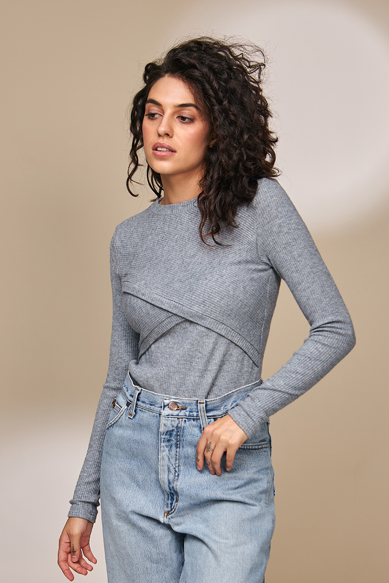 Теплий джемпер для вагітних та годуючих з теплого трикотажу в рубчик.