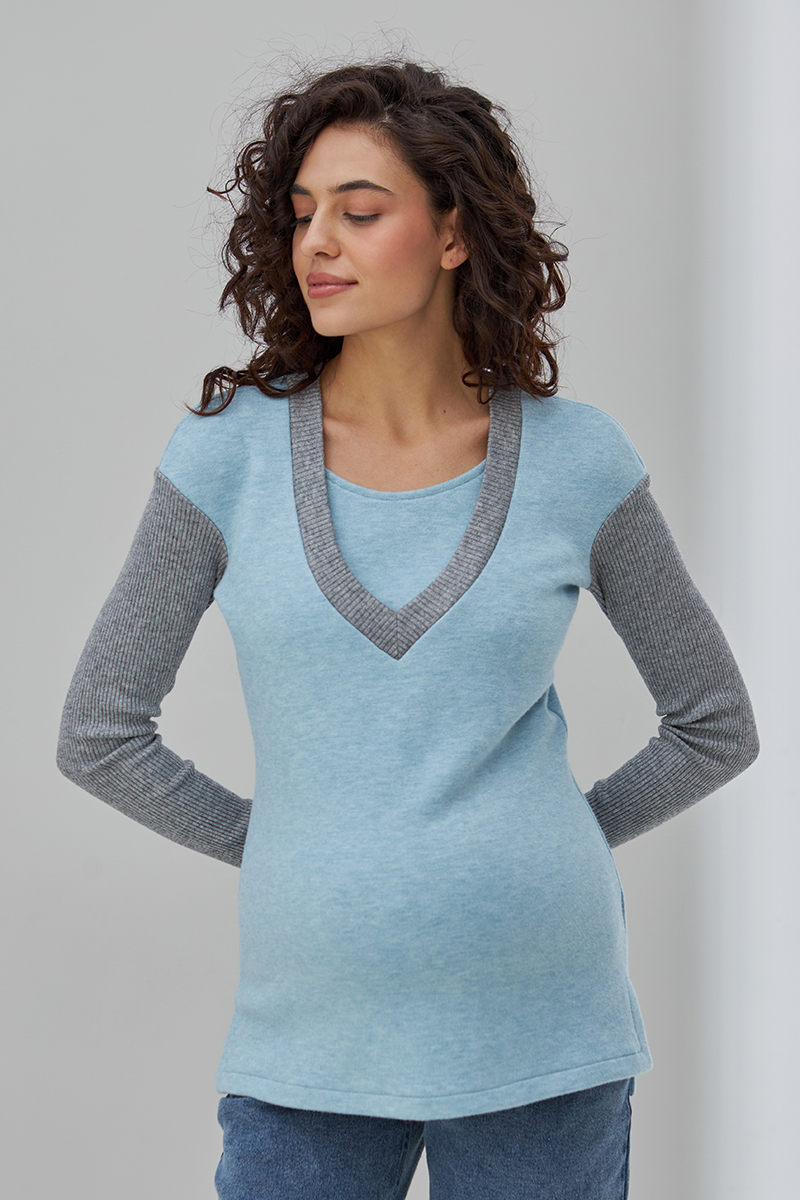 Молодіжний джемпер для вагітних та годуючих з теплого трикотажу з компаньйоном-гумкою.