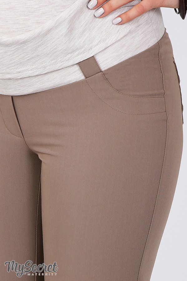 Прекрасный вариант для беременных приверженец классики и делового стиля. Зауженные брюки из тонкой костюмной ткани. Впереди карманы-обманка с декор.отстрочками, сзади накладные карманы. Бандажный пояс с широкими шлевками позволяет носить эту модель и после беременности. Цвет: капучино.