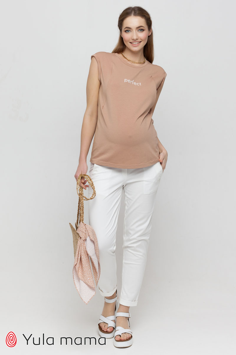 Комфортні штани-чинос для вагітних з еластичної бавовняної тканини.