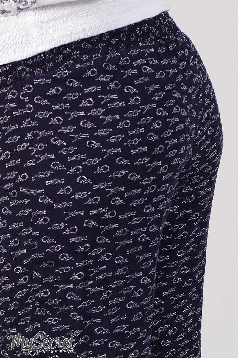 Удобные, свободные брюки из штапеля с принтом. Передние карманы с небольшой свободой облегания и зауженный к низу покрой хорошо маскируют фигуру и визуально стройнят. Пояс из основной ткани, перестроченной на тонкую резинку абсолютно не сковывает движений и не давит, а также он абсолютно универсален (подходит и после беременности). Цвет: принт белые «узелки» на темно-синем.
