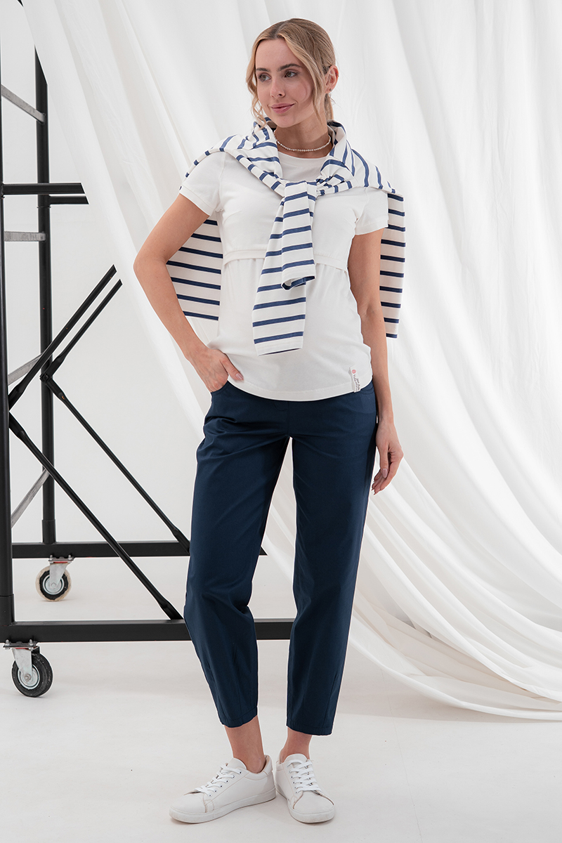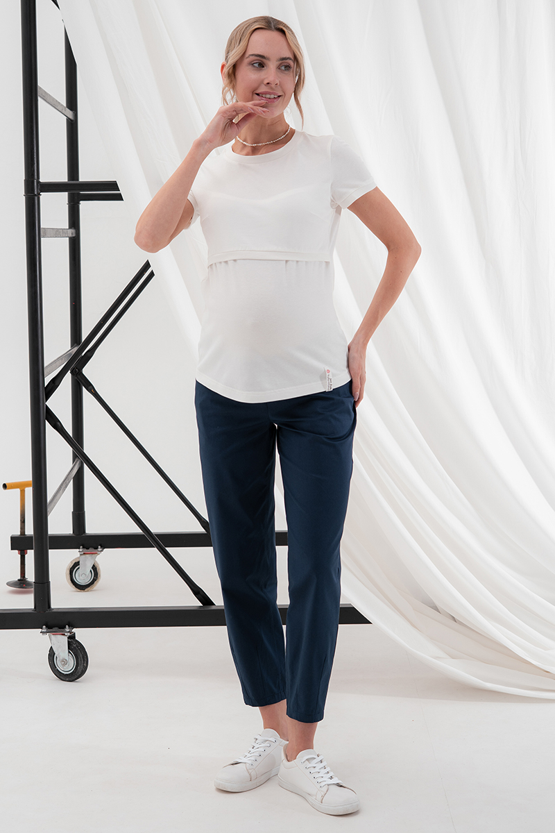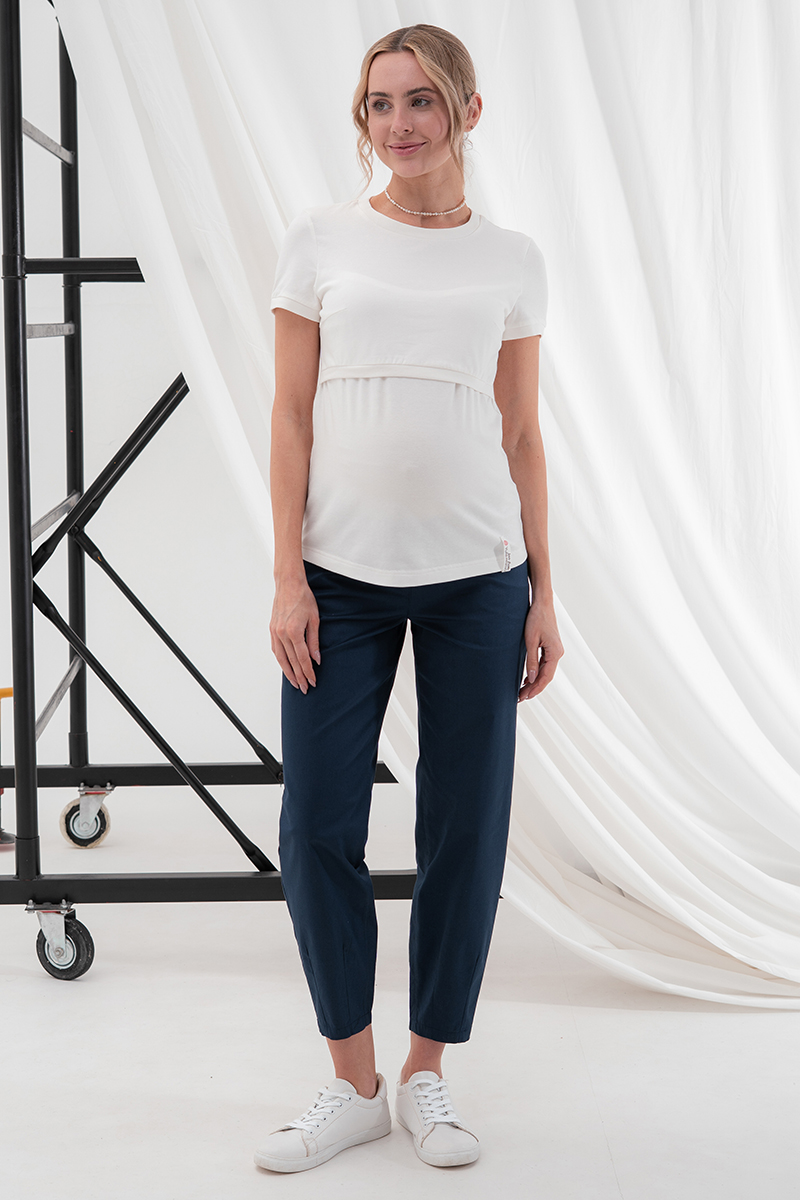 Вільні штани МОМ для вагітних із стрейчевого котону.
