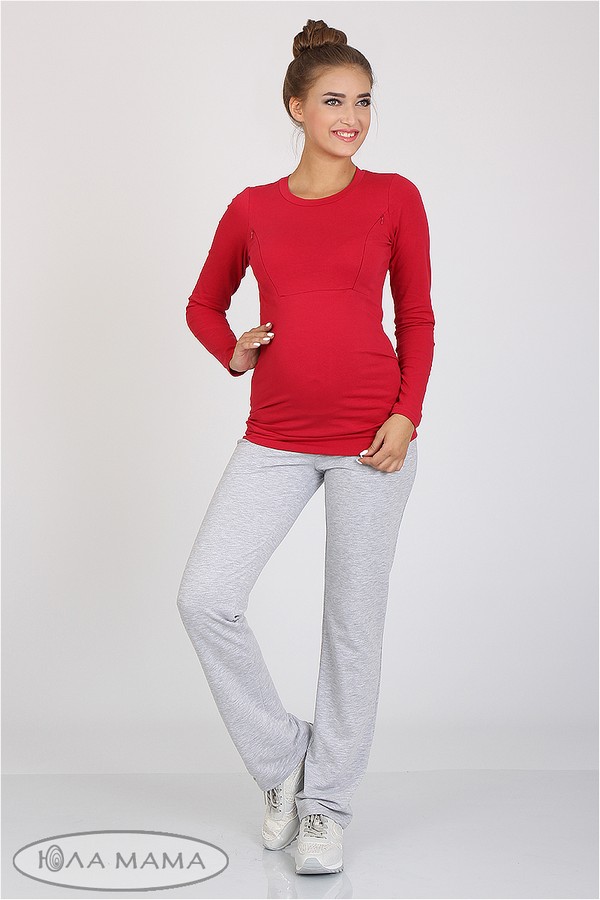 Классические спортивные брюки для беременных прямого силуэта из трикотажа двунитка. Бандажный пояс и входы в карман отдекорированы контрастной рибаной. Цвет: серый.