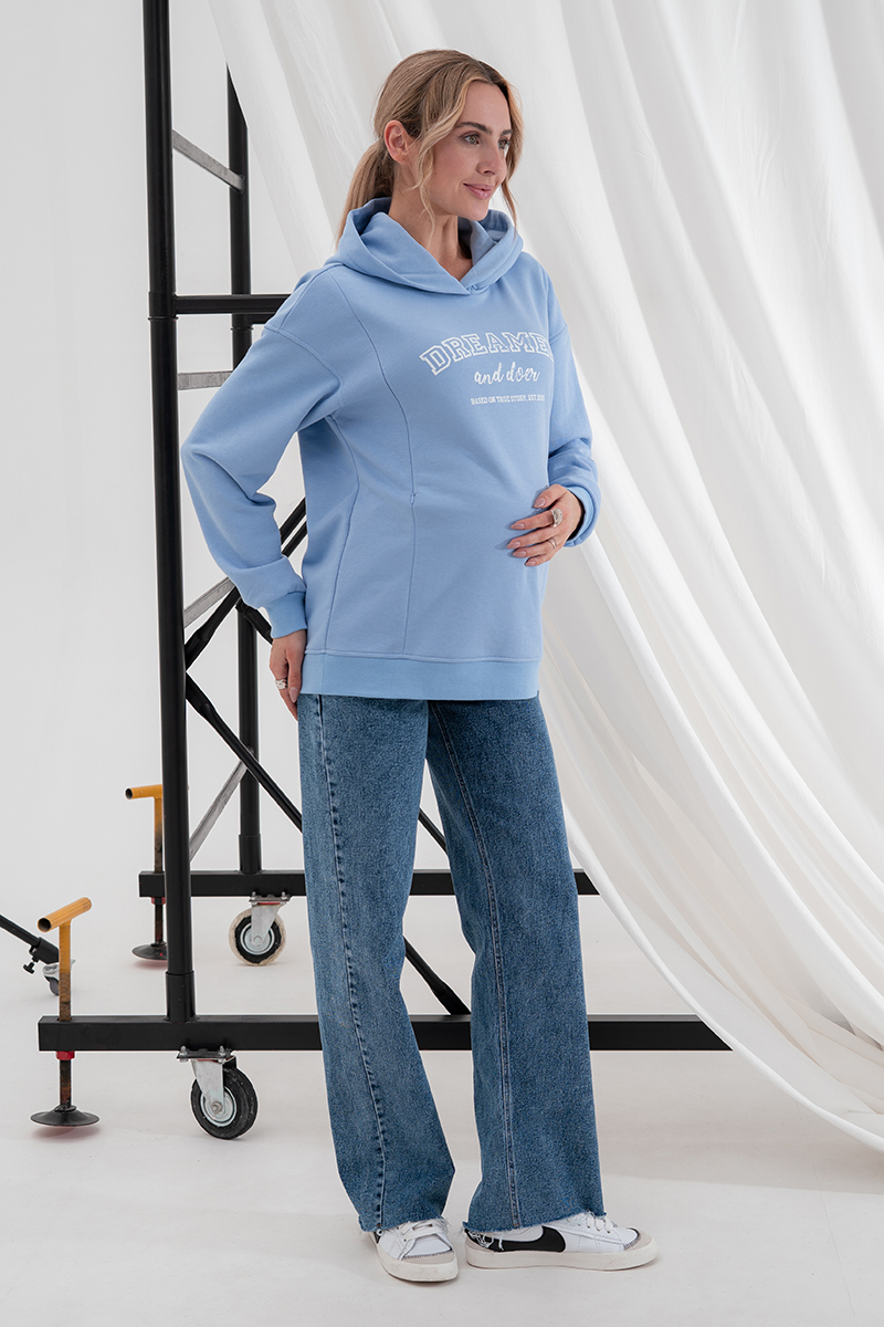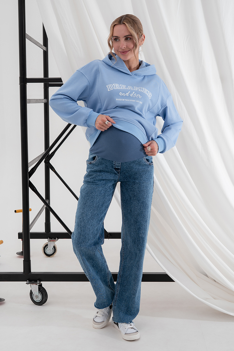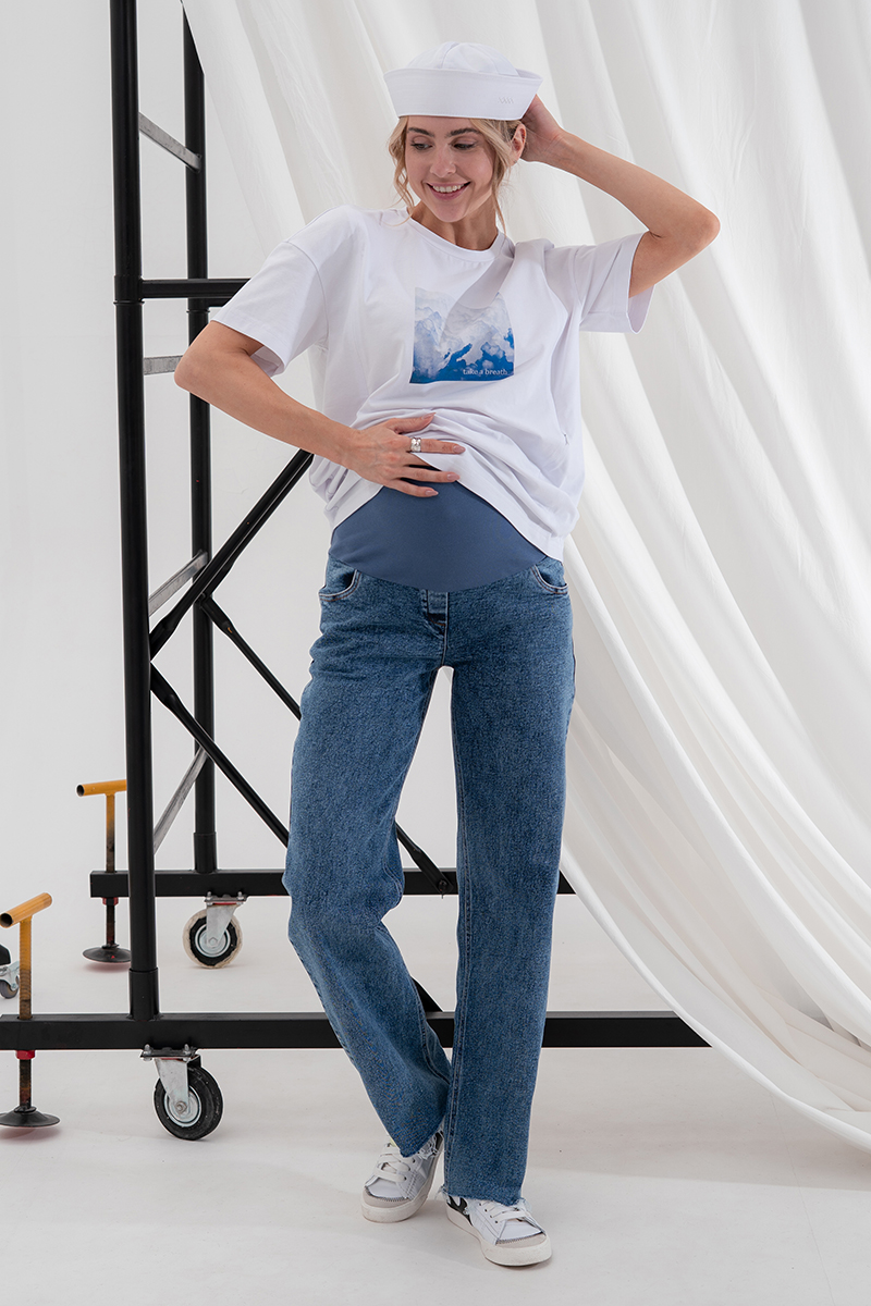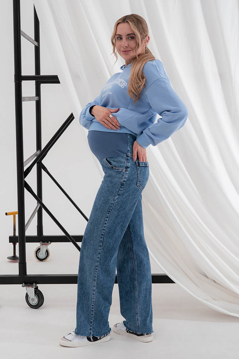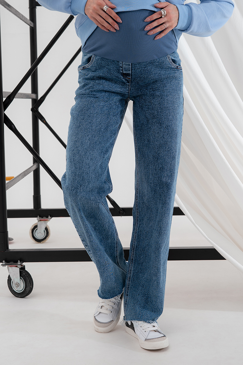 Широкі джинси для вагітних із високою спинкою та відкритим зрізом.