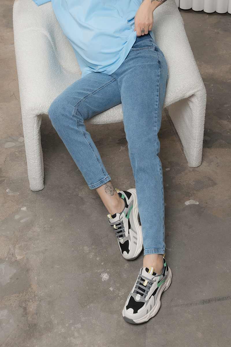 Тип пояса - комбінований: низький пояс під животик з 2-ма перфорованими резинками + високий бавовняний трикотажний пояс з перфорованою гумкою, дозволяють регулювати об'єм пояса під різний термін вагітності та носити цю модель після (попередньо прибравши високий пояс).