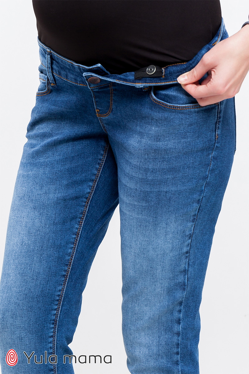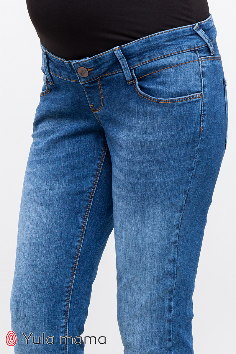 Тип пояса - комбинированный: джинсовый с регулировкой под животик + высокий трикотажный пояс из микрофибры, что позволяет носить эту модель во время и после беременности (предварительно убрав высокий пояс).