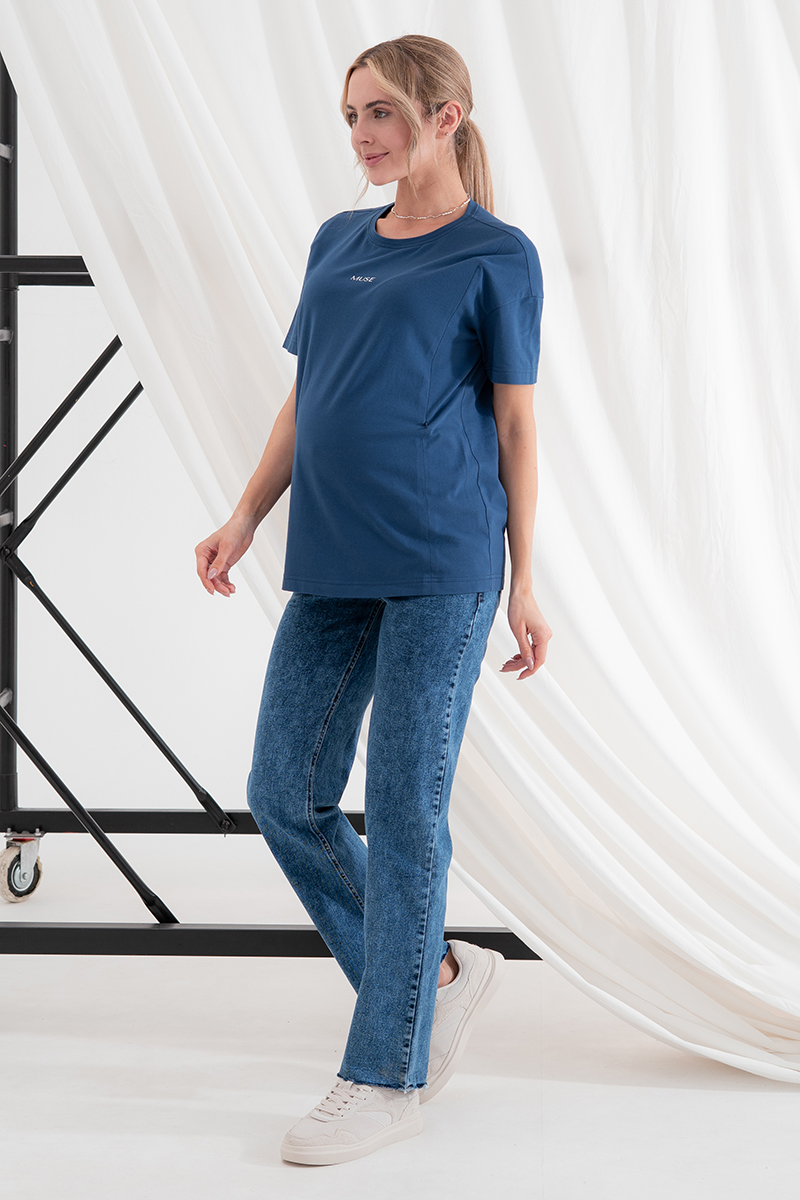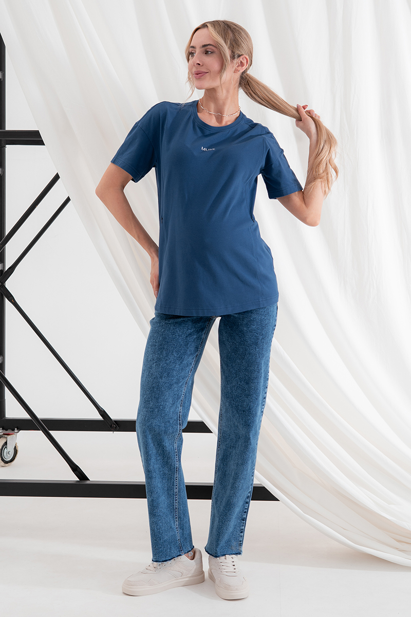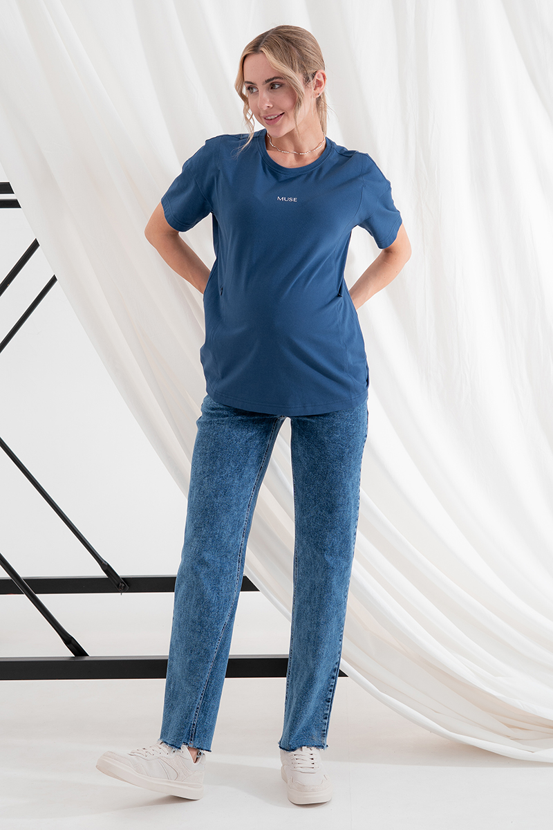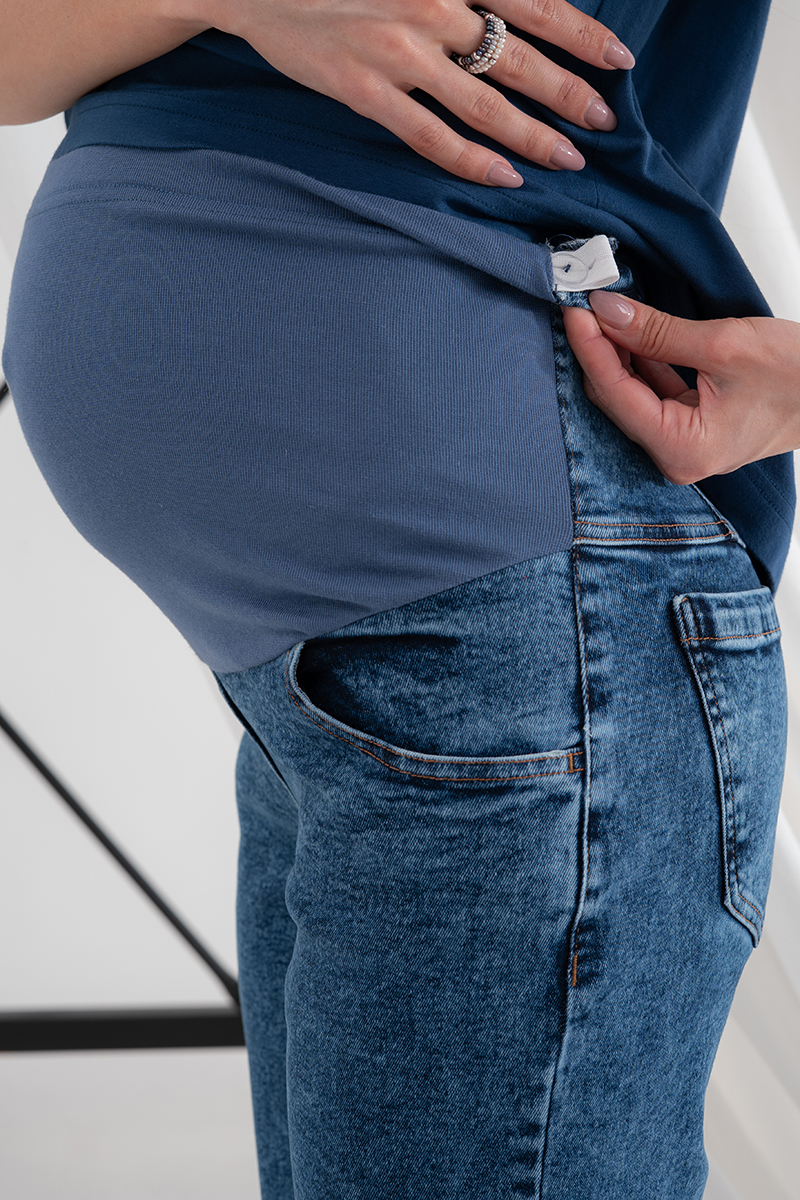 Стильні прямі джинси для вагітних із високою спинкою та непідшитим низом.