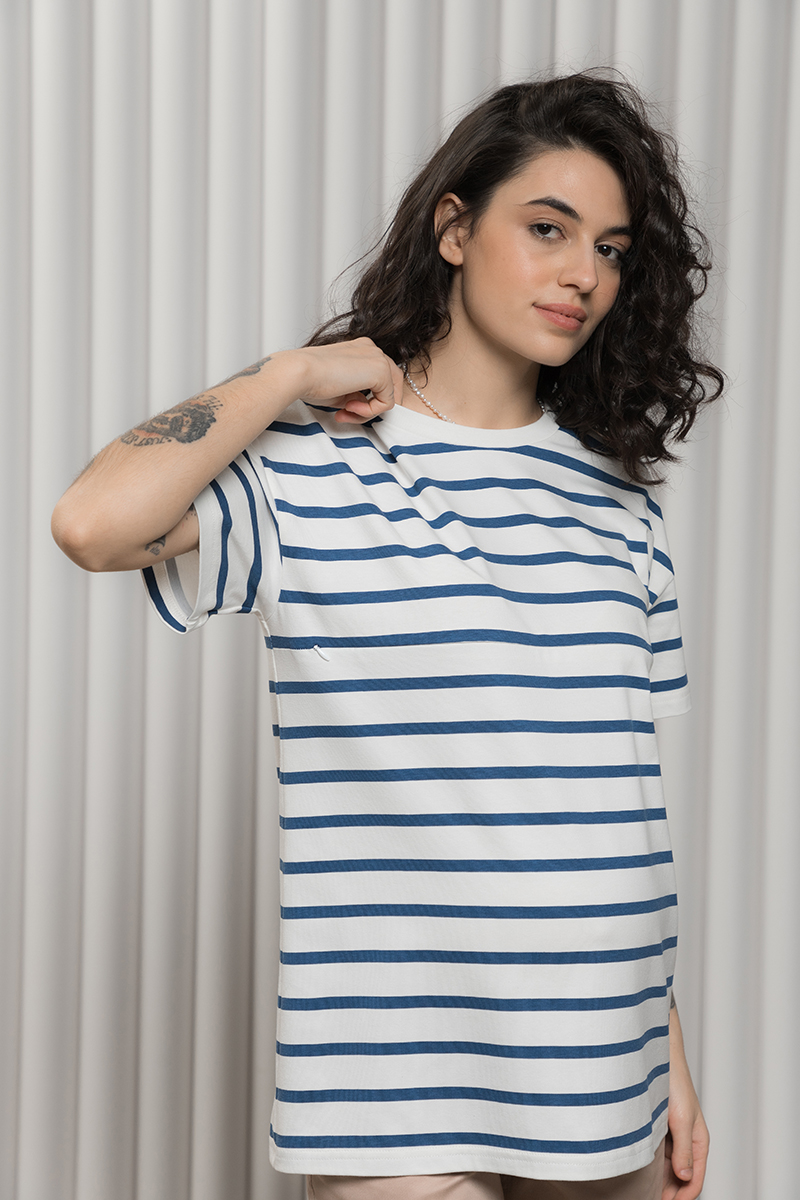 Молодіжна бавовняна футболка в смужку для вагітних та годуючих.