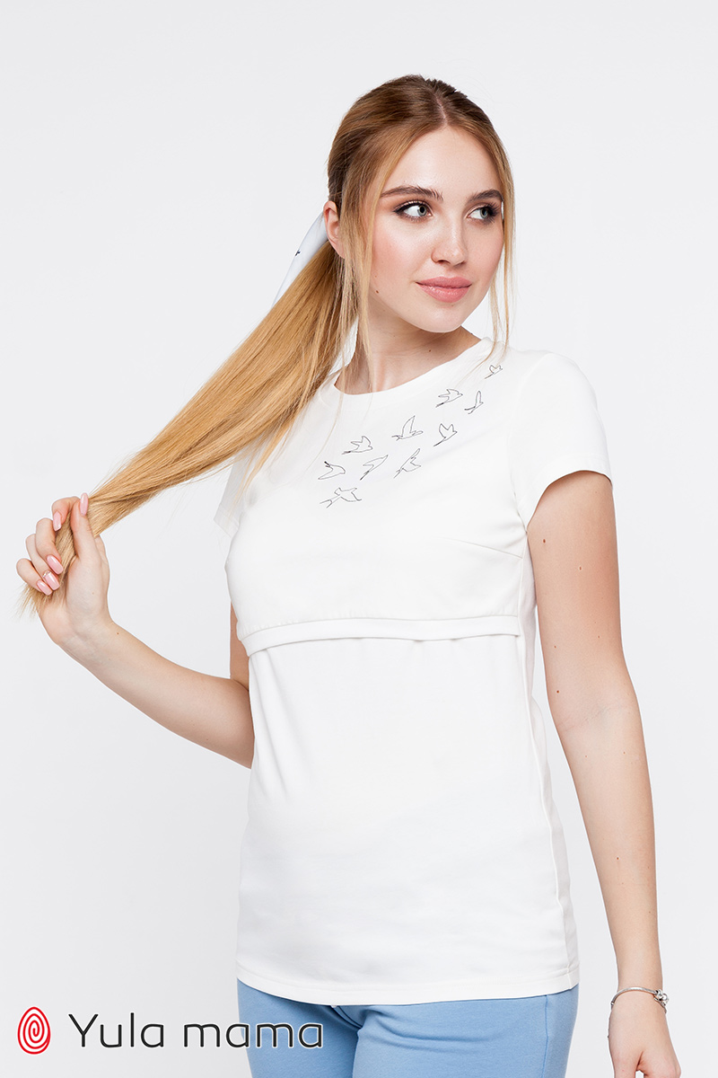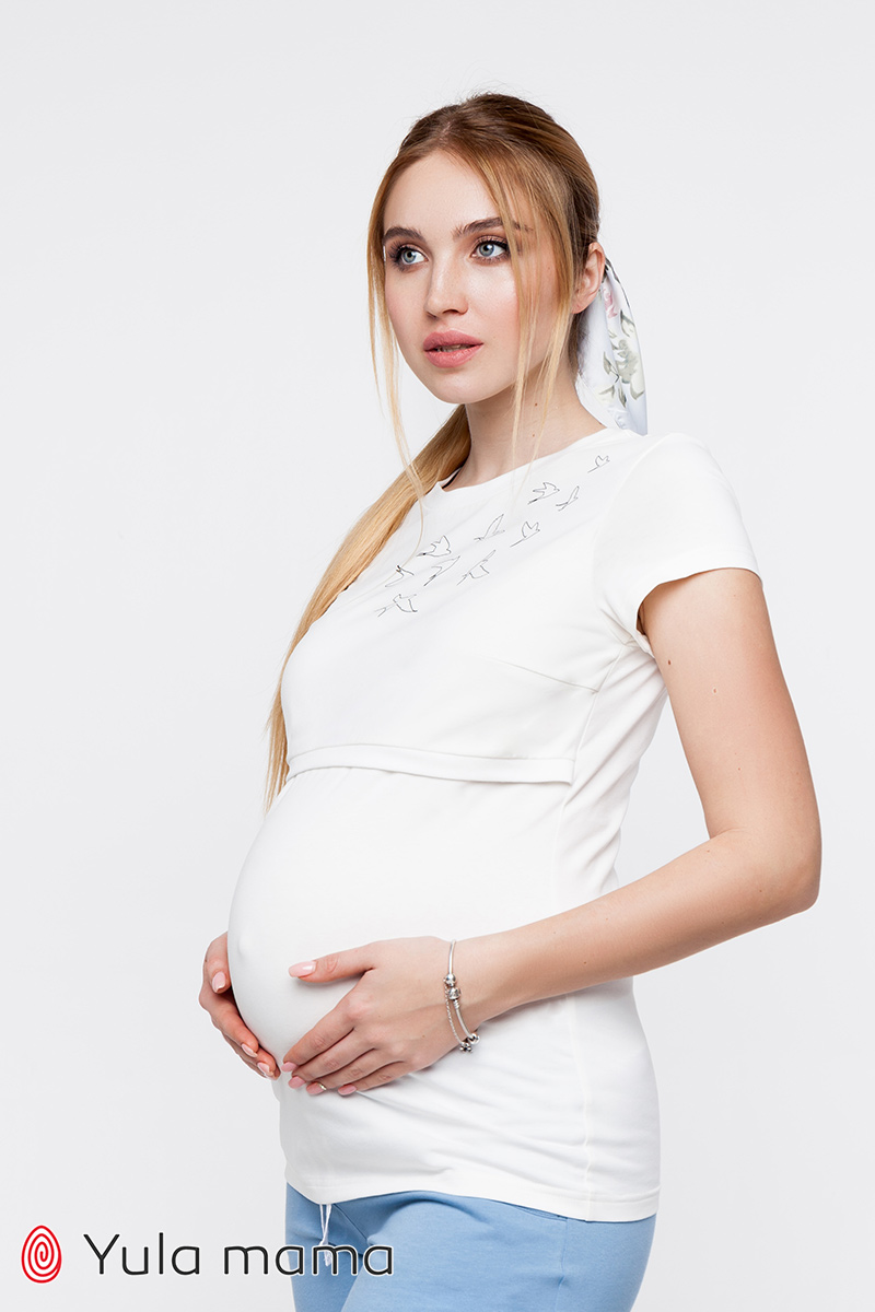 Стильная футболка для беременных и кормящих мам с оригинальным принтом.