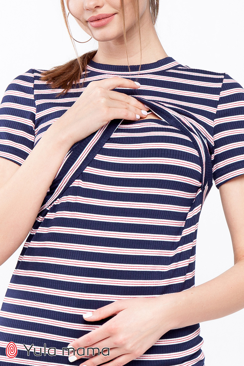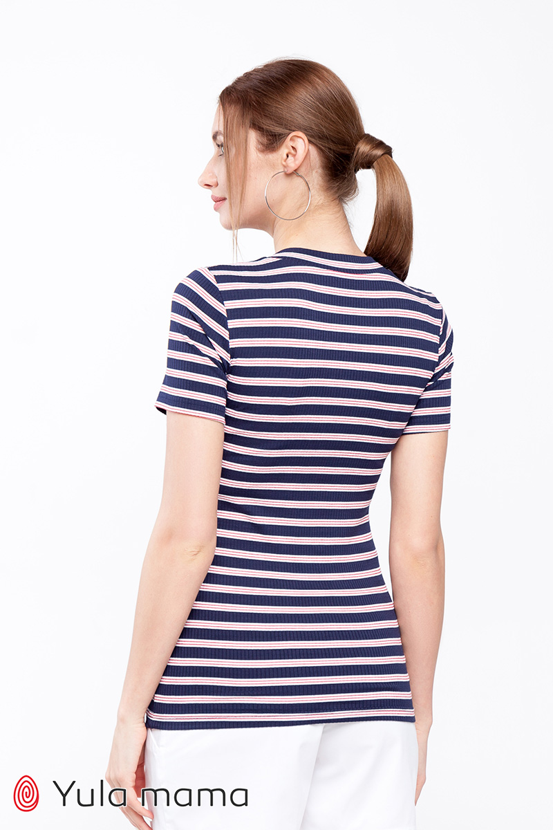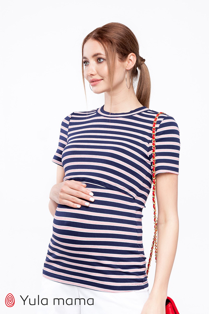 Смугаста футболка для вагітних і годуючих мам із трикотажу в резинку.