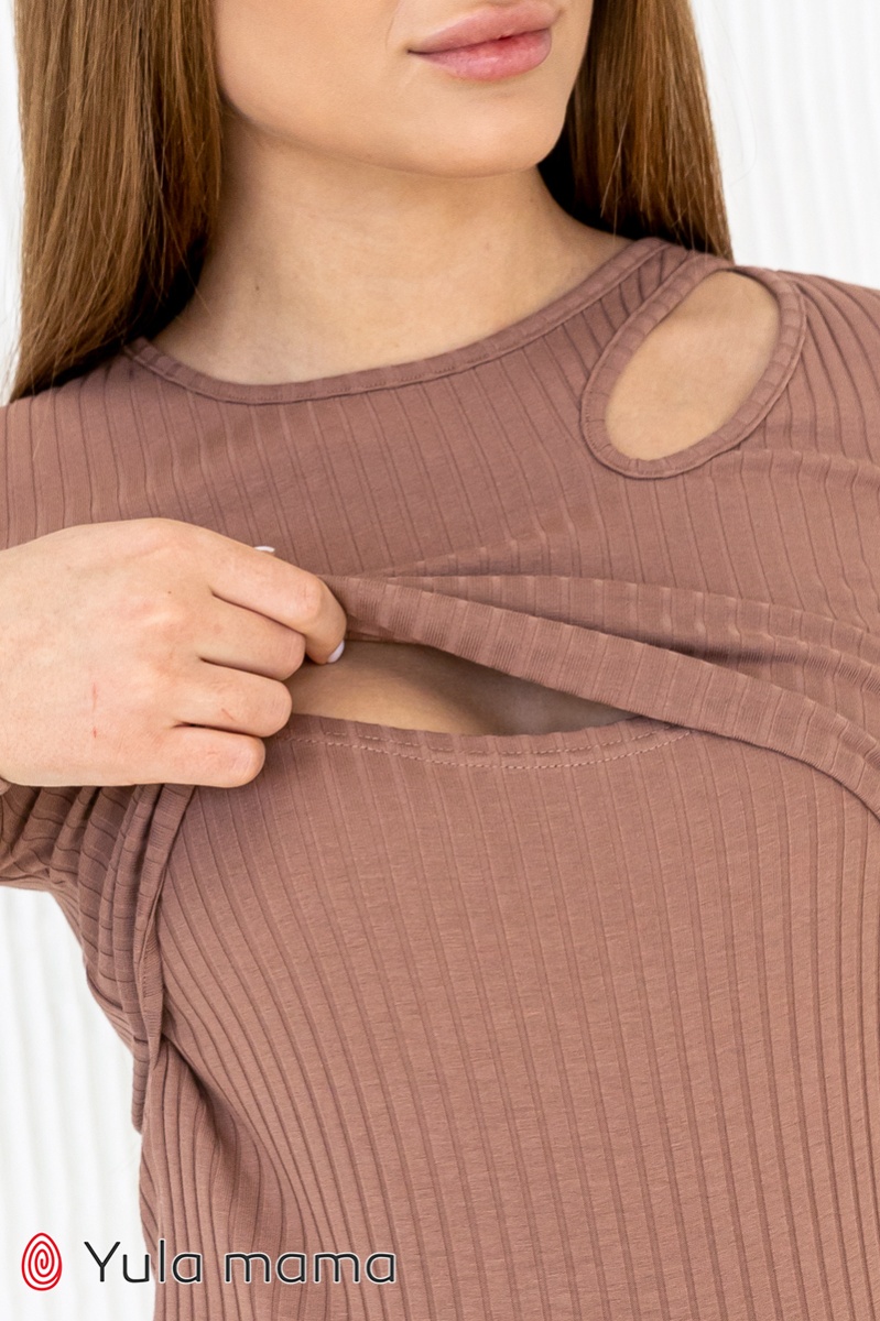 Облягаючий трендовий лонгслів для вагітних і годуючих з асиметричним вирізом на плечі.