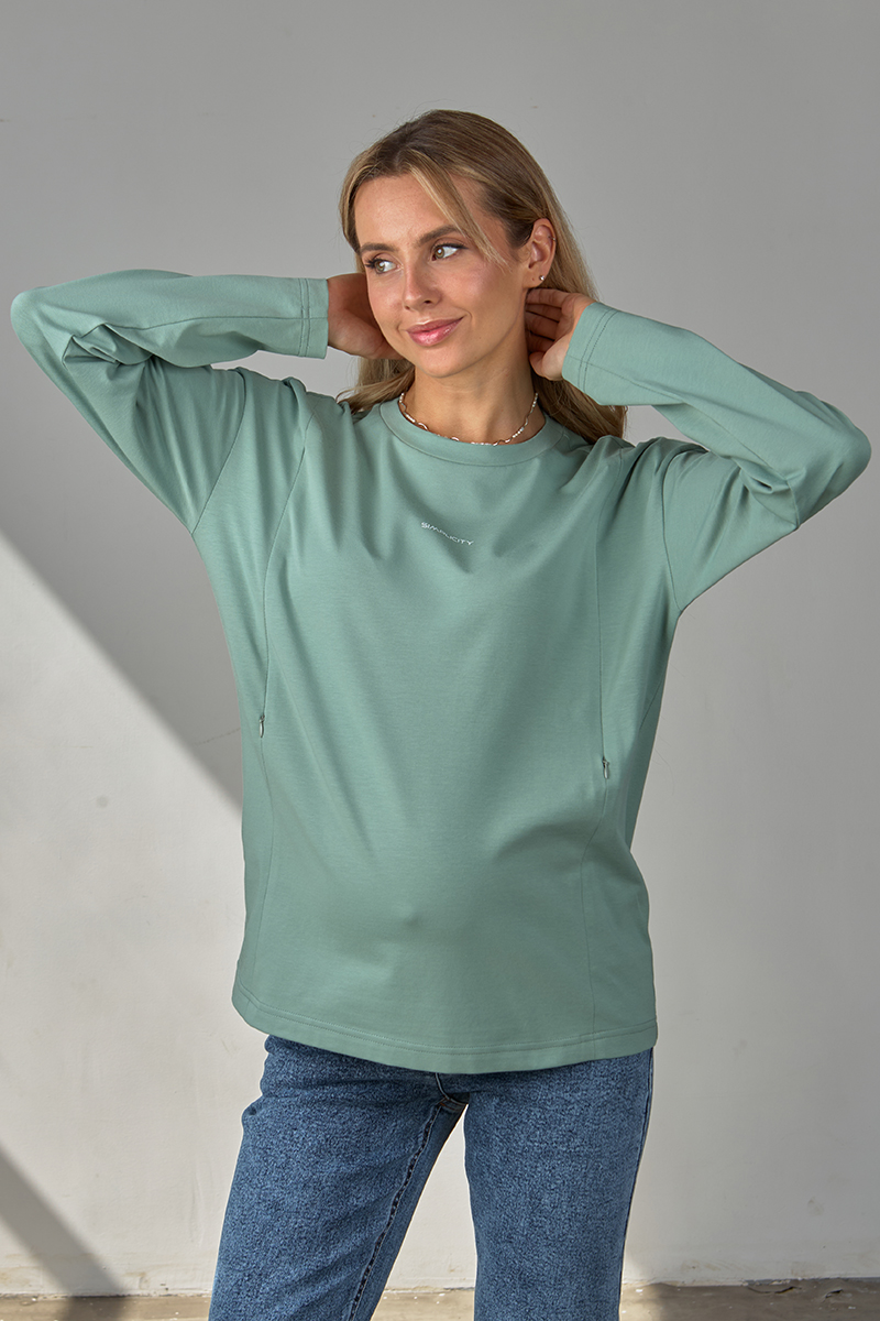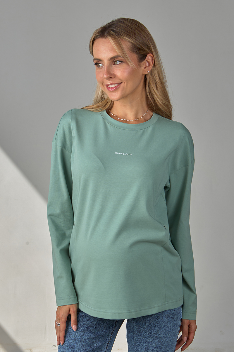 Базовий лонгслів для вагітних та годуючих із щільного бавовняного трикотажу.
