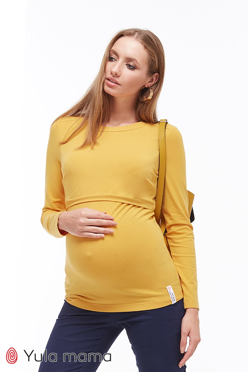 Базовый лонгслив для беременных и кормящих из хлопкового трикотажа.