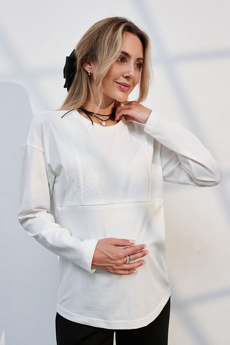 Стильний лонгслів для вагітних і годуючих у білизняному стилі.