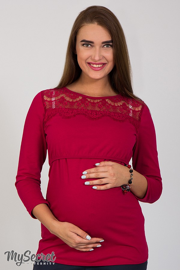 Оригинальный лонгслив для беременных и кормящих из хлопкового трикотажа с вставками из кружева шантильи (секрет кормления — верхняя деталь полочки заходит на нижнюю деталь). Благодаря сочетанию базового трикотажа сочных расцветок и утонченного кружева модель выглядит очень стильно и подходит как для ежедневного использования, так и для выхода, в зависимости от подобранных аксессуаров. Цвет: шоколад.