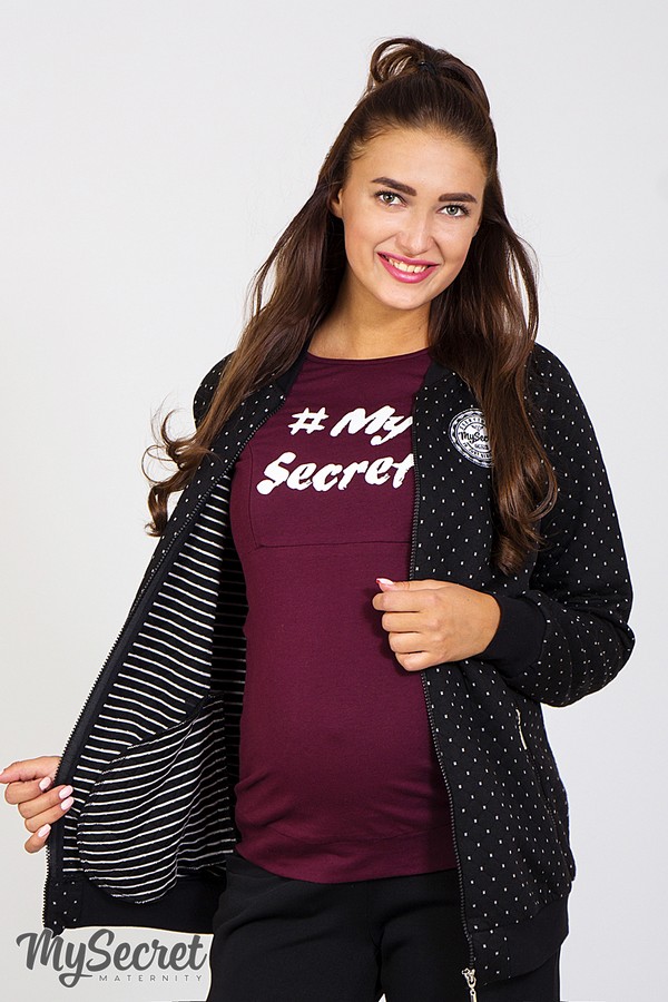 Стильний та теплий бомбер для вагітних, виконаний з модного трикотажу "стібка" та рибани.