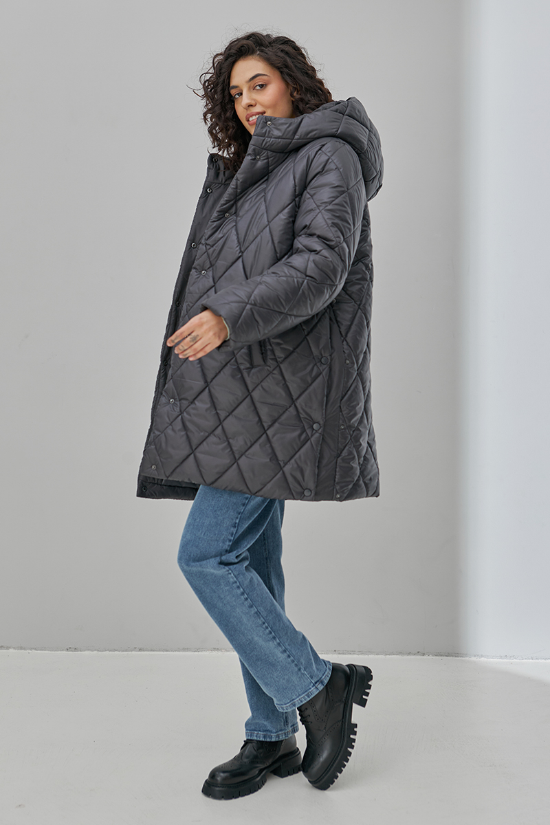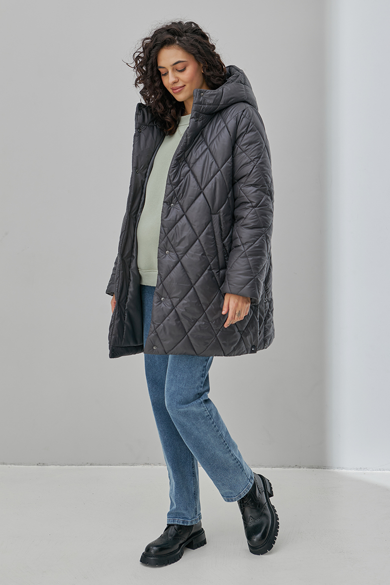 Тепла стьобана куртка для вагітних, на кнопках та із бічними розширювачами.