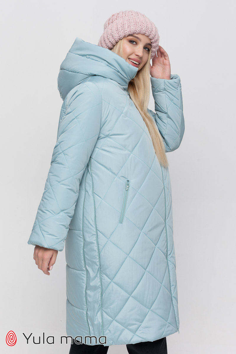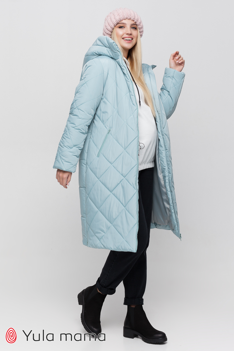 Зимнее теплое пальто для беременных из плащевки с боковыми расширителями.