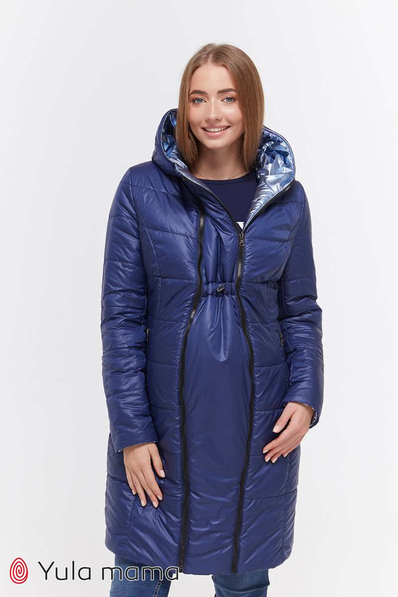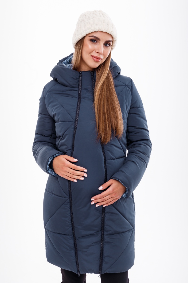 Молодежное двухстороннее пальто для беременных из плащевки с легким блеском на европейскую зиму.