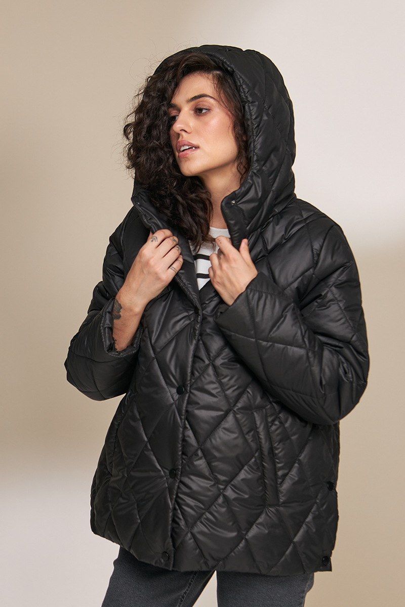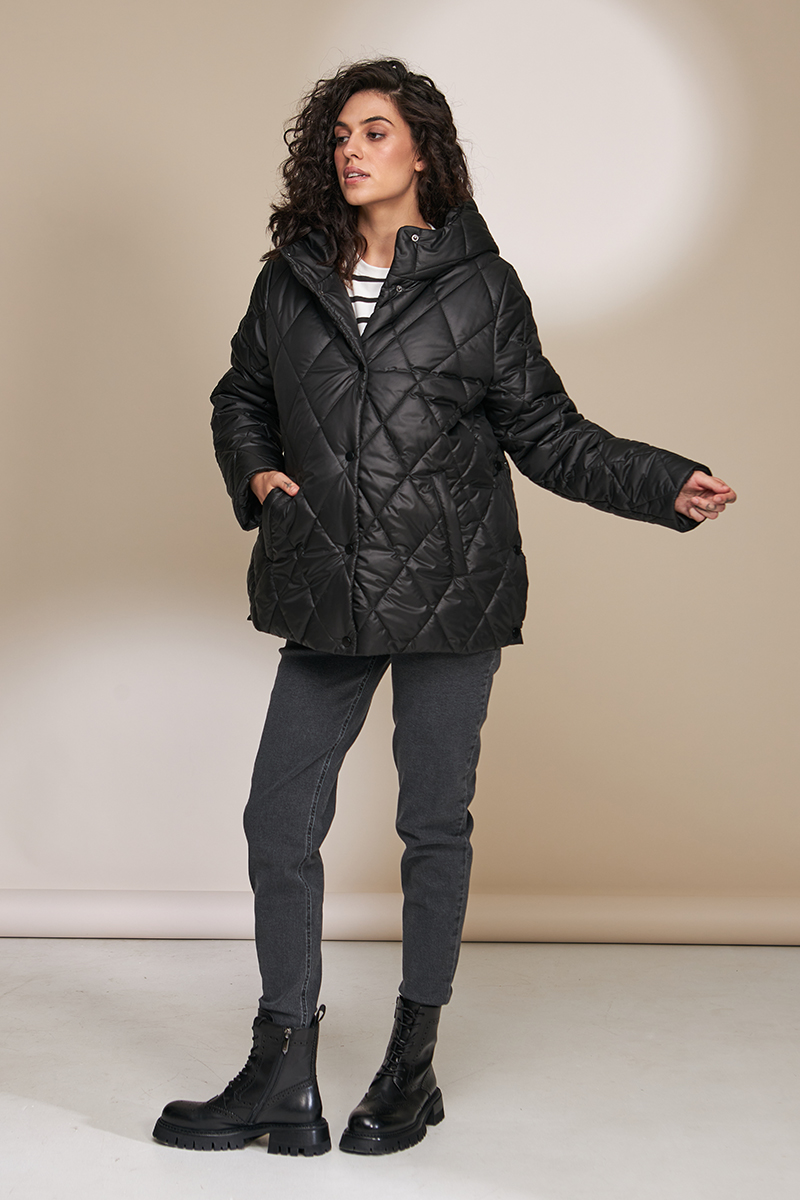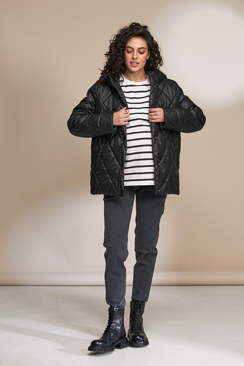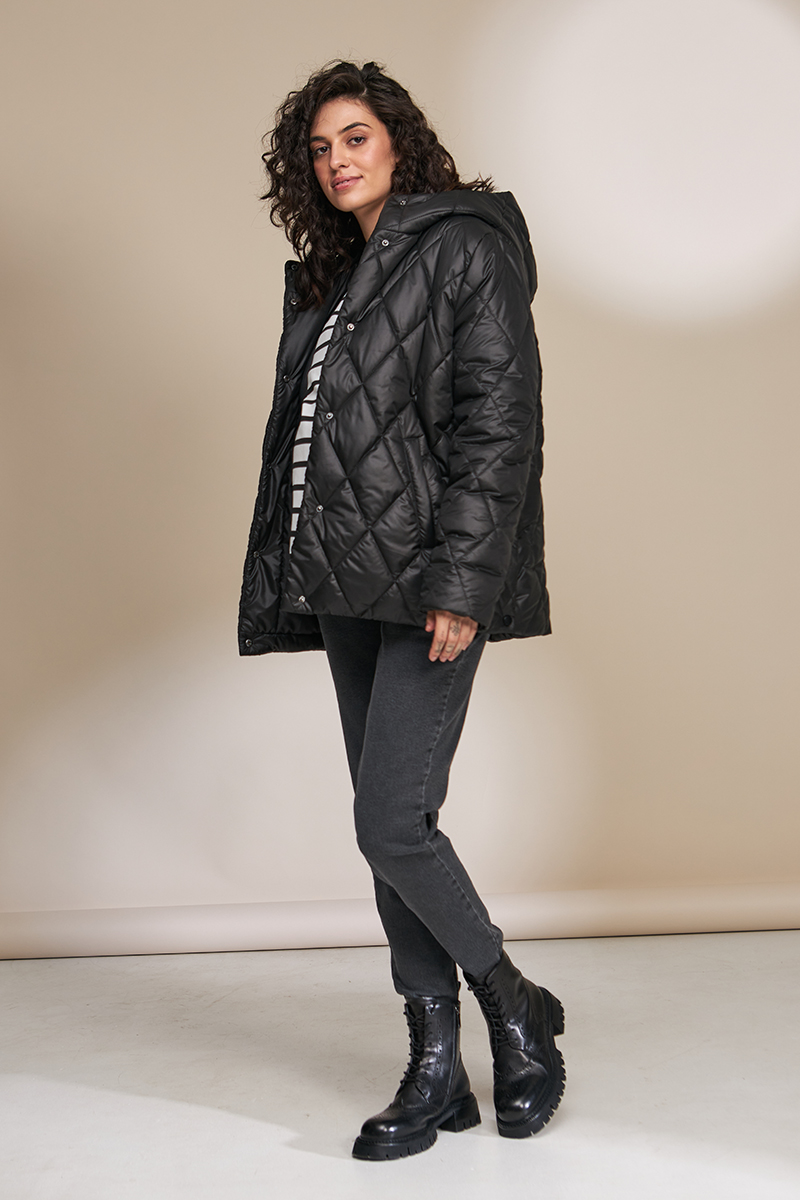 Трендова стьобана куртка на кнопках для вагітних із бічними розширювачами.