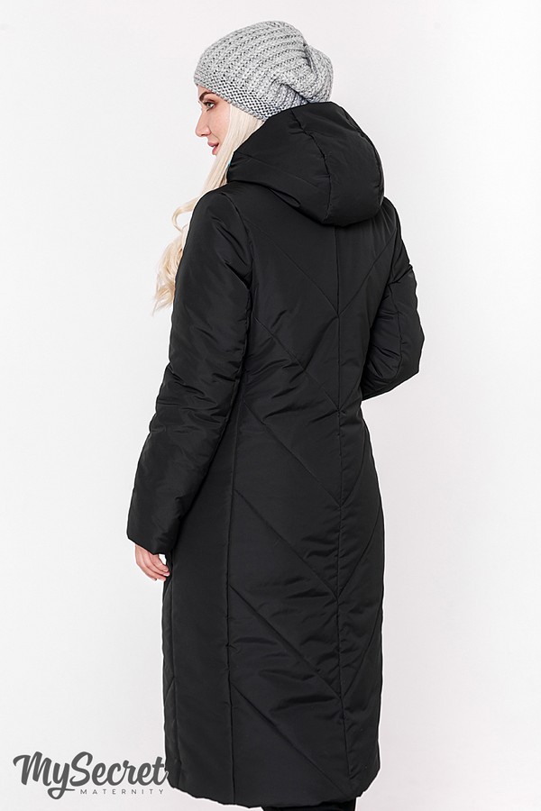 Новинка!!! Супер-стильное зимнее двухстороннее пальто для беременных из плотной текстурированной плащевки на силиконе. Благодаря центральной вставке на молниях пальто из молодежного облегающего силуэта превращается в полноценное изделие для беременных. Диагональная стежка и вытянутый силуэт визуально стройнят. Глубокие и утепленные микрофлисом карманы - согреют ваши ручки в холода. А благодаря двум лицевым сторонам с разными цветами плащевки и разными типами стежки - вы получаете два изделия по цене одного! Цвет: черный и аквамарин.