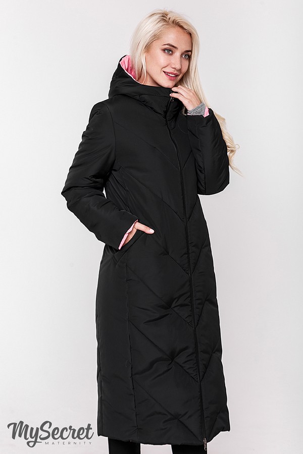 Новинка!!! Супер-стильное зимнее двухстороннее пальто для беременных из плотной текстурированной плащевки на силиконе. Благодаря центральной вставке на молниях пальто из молодежного облегающего силуэта превращается в полноценное изделие для беременных. Диагональная стежка и вытянутый силуэт визуально стройнят. Глубокие и утепленные микрофлисом карманы - согреют ваши ручки в холода. А благодаря двум лицевым сторонам с разными цветами плащевки и разными типами стежки - вы получаете два изделия по цене одного! Цвет: черный и теплый розовый.