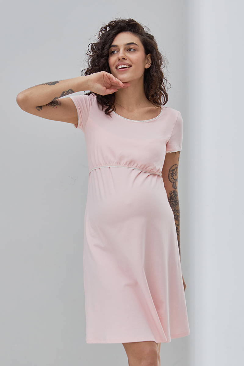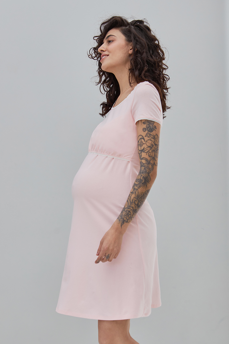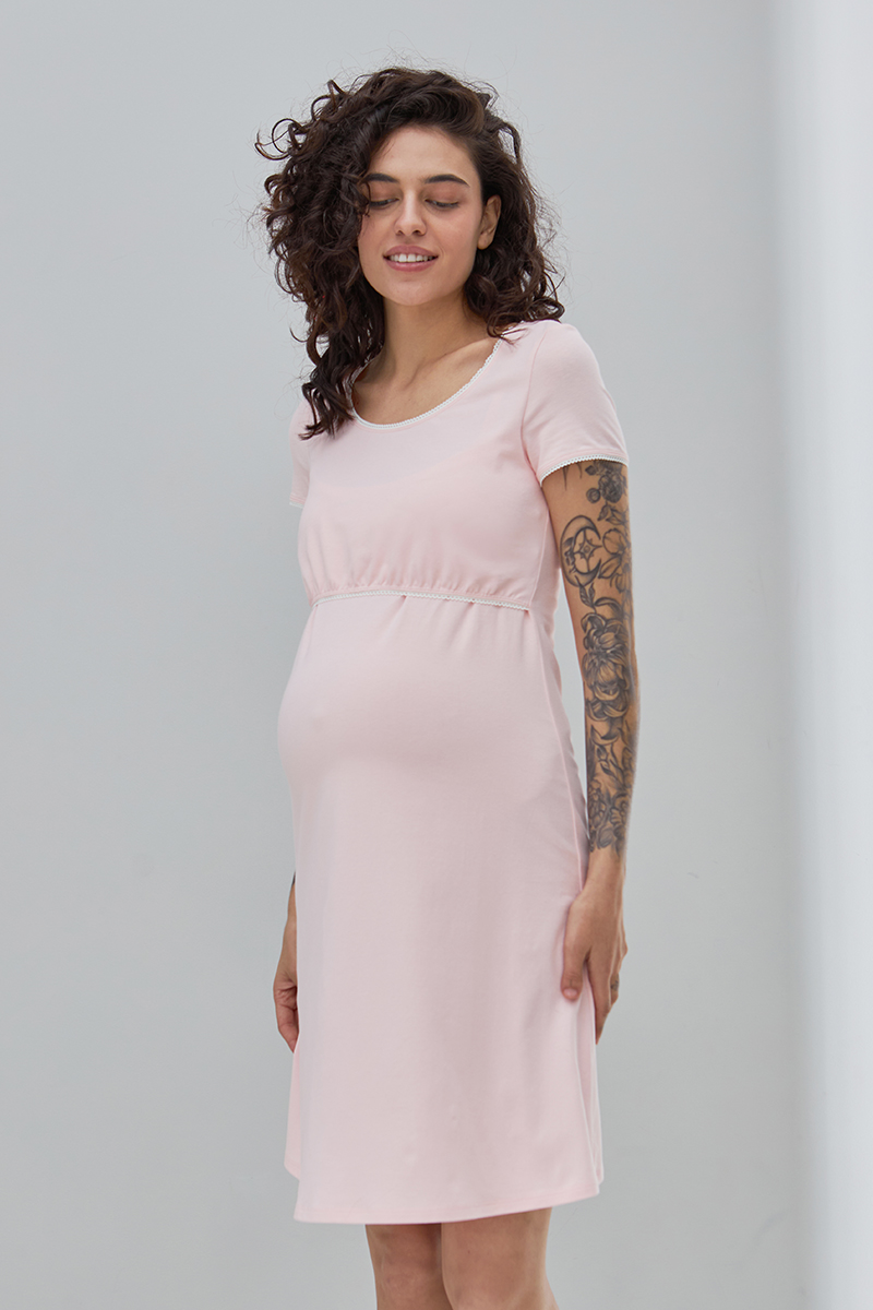 Комфортна нічна сорочка для вагітних і годуючих з бавовняного трикотажу.