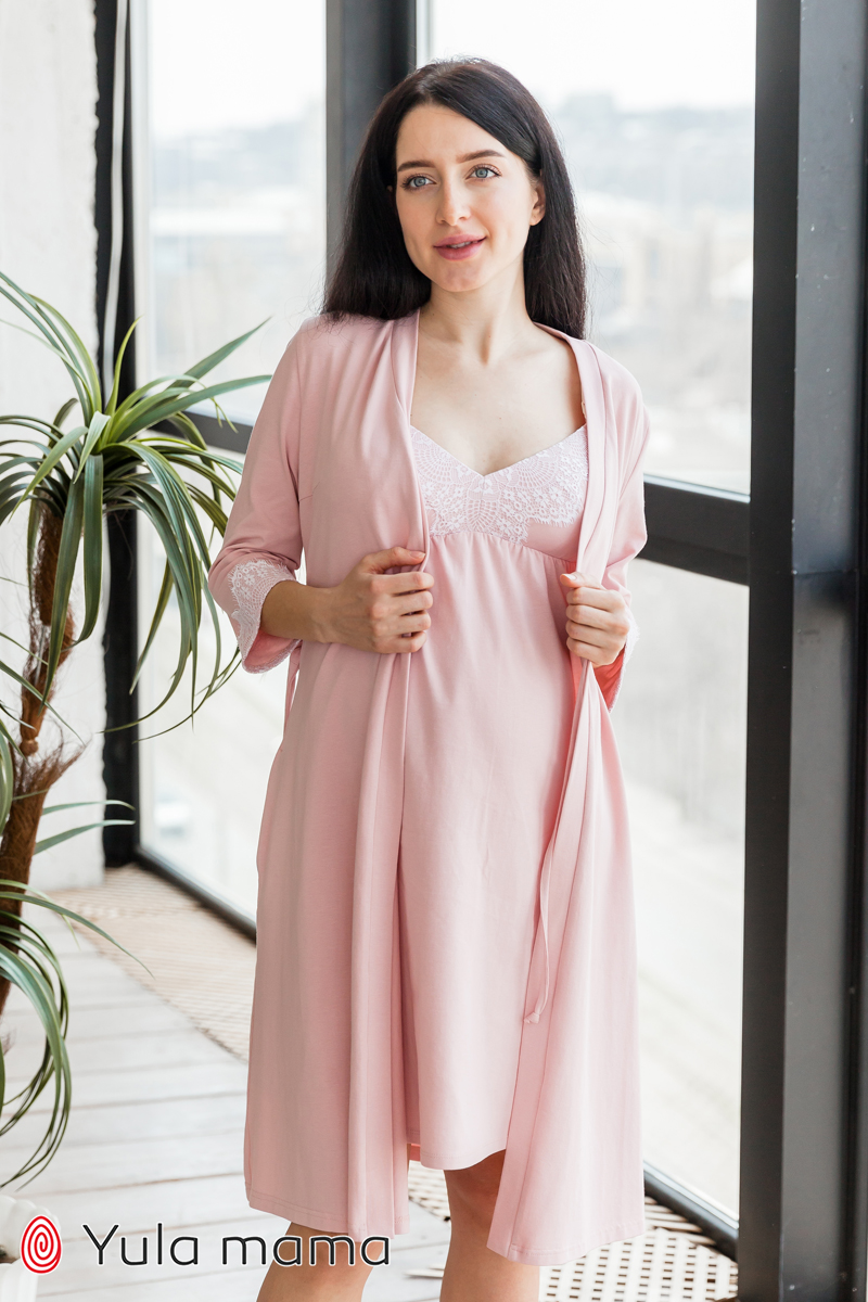 Красивий комплект з нічної сорочки та халата з мереживом для вагітних та годуючих мам.