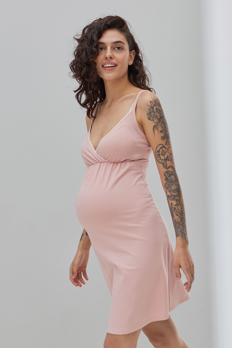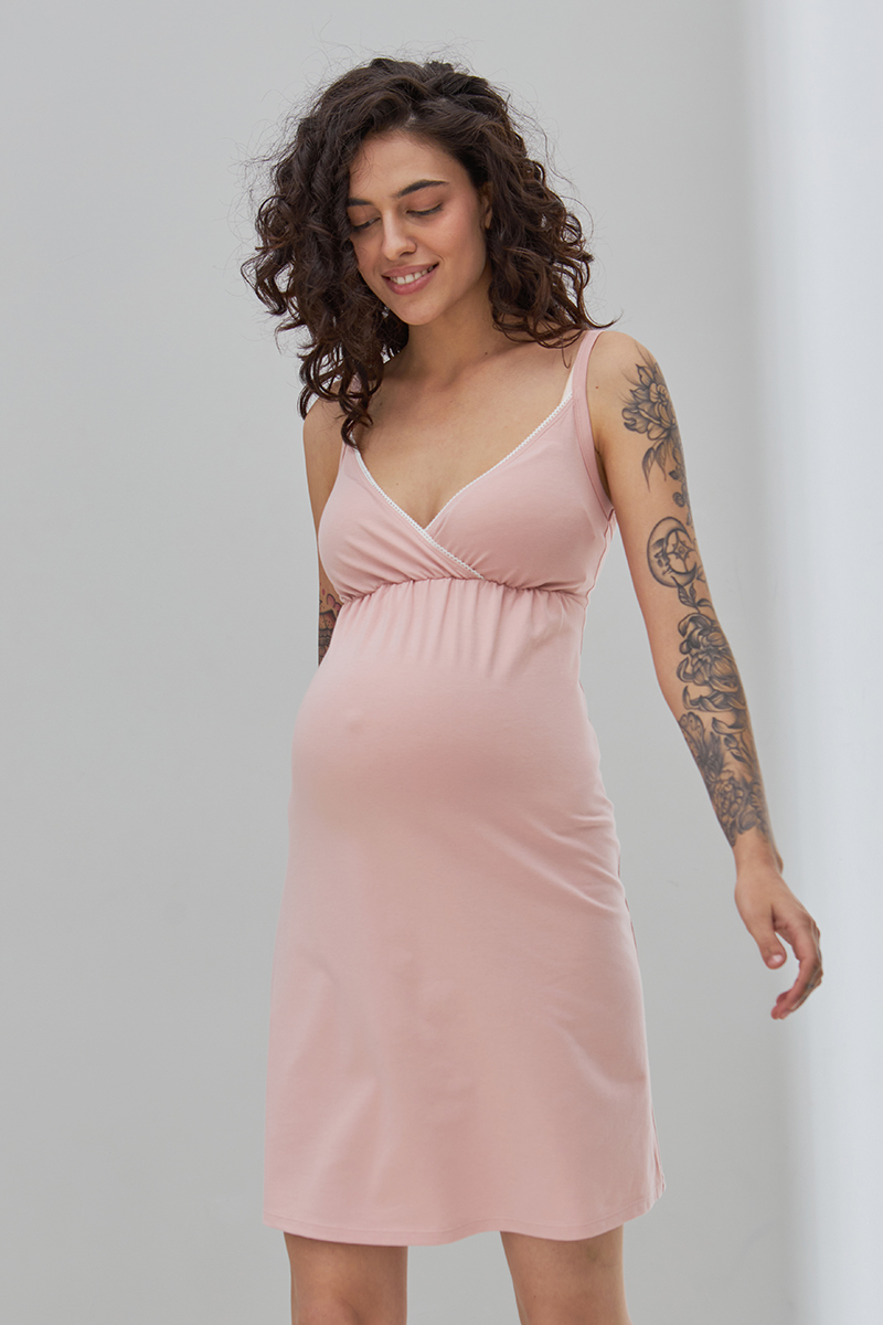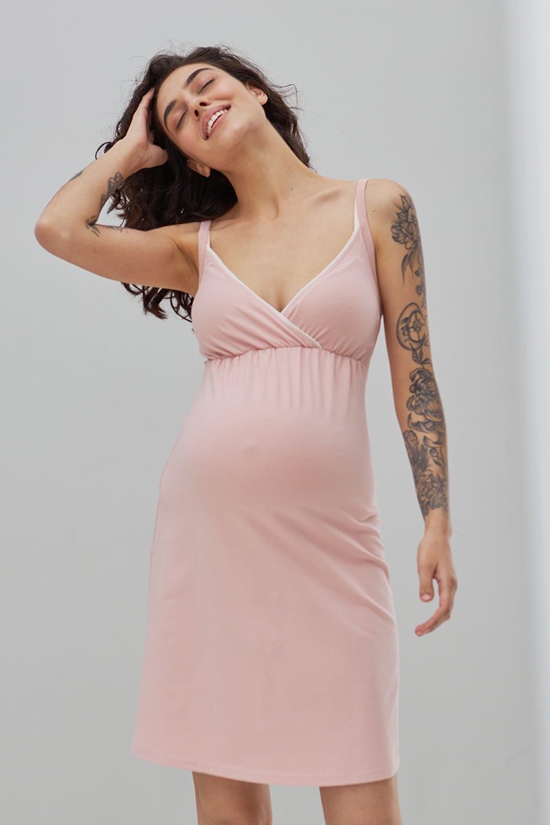 Комфортна нічна сорочка для вагітних і годуючих мам на бретелях.