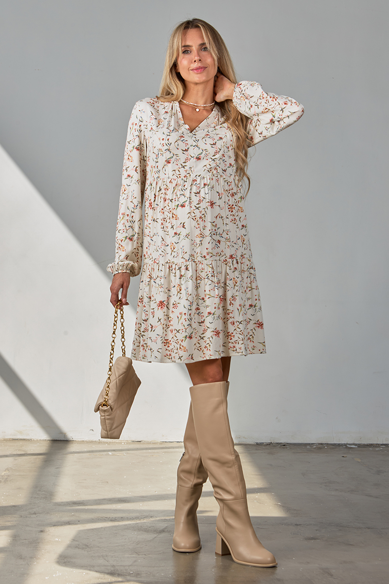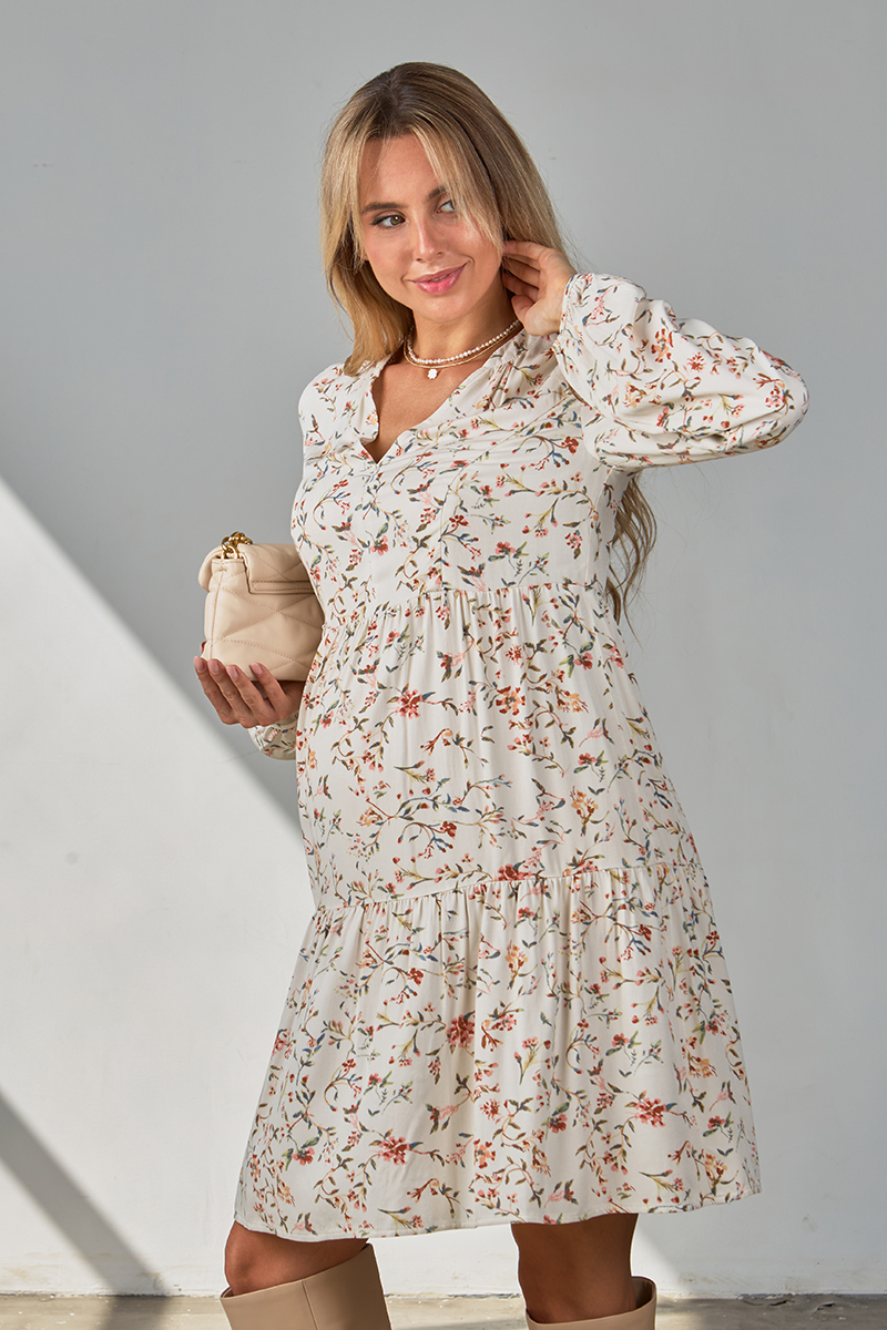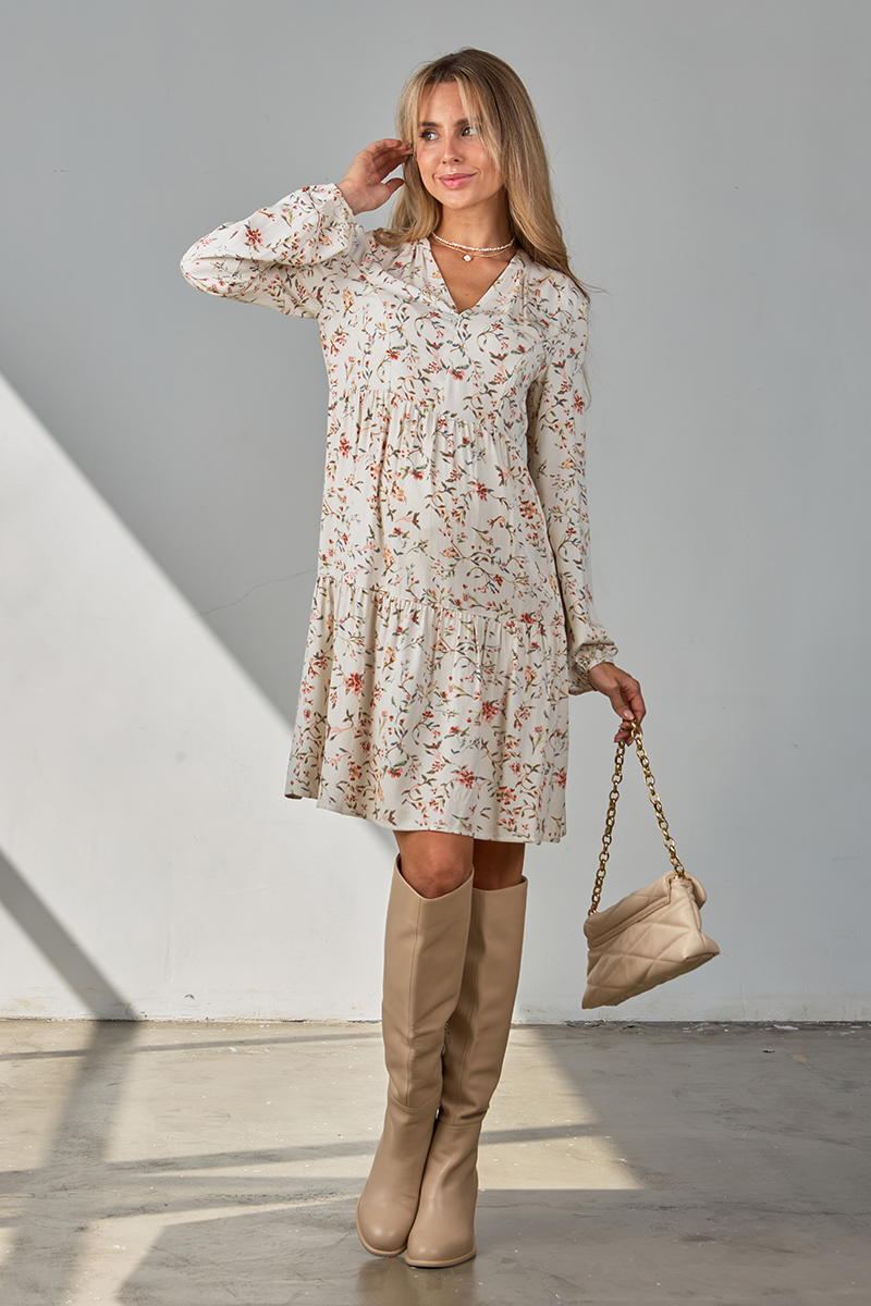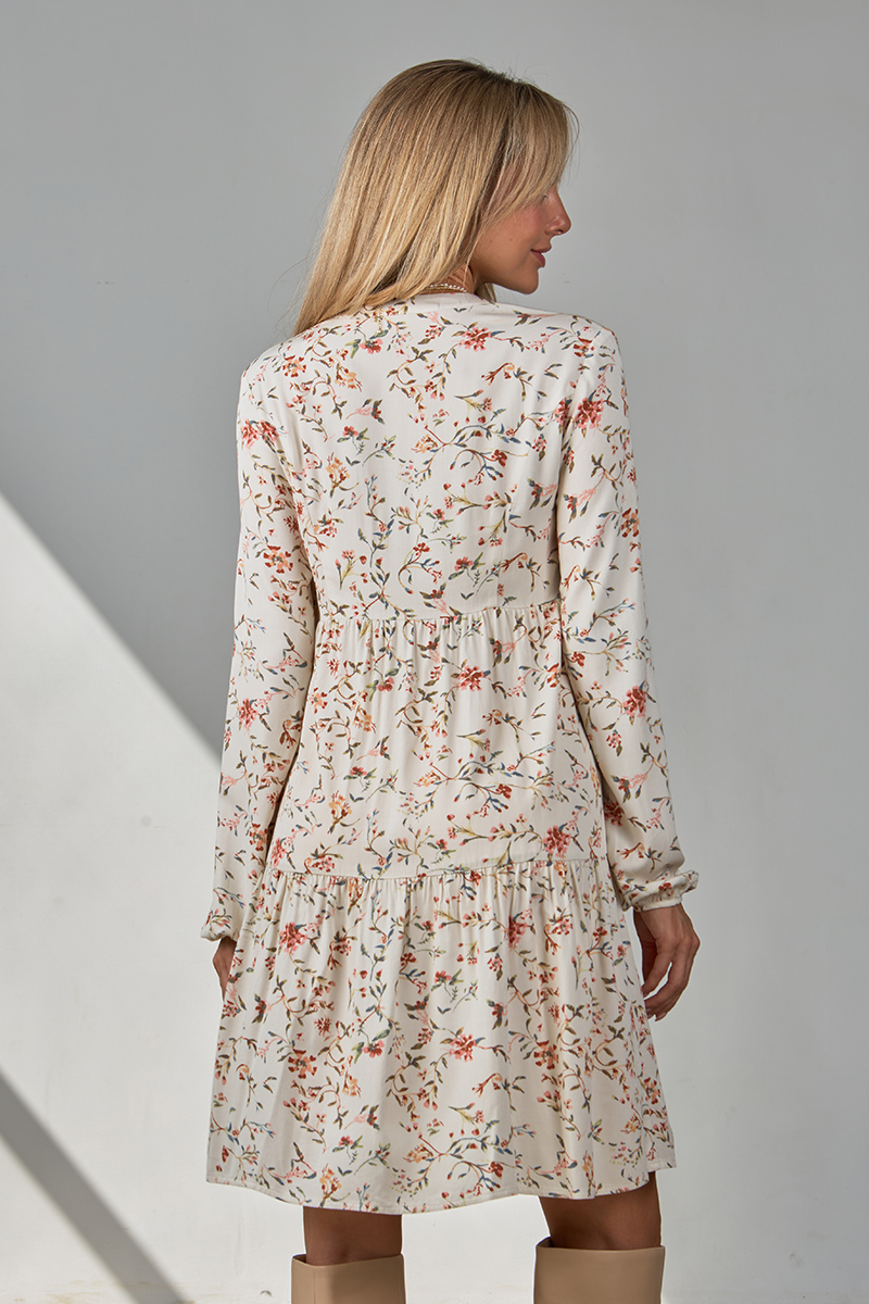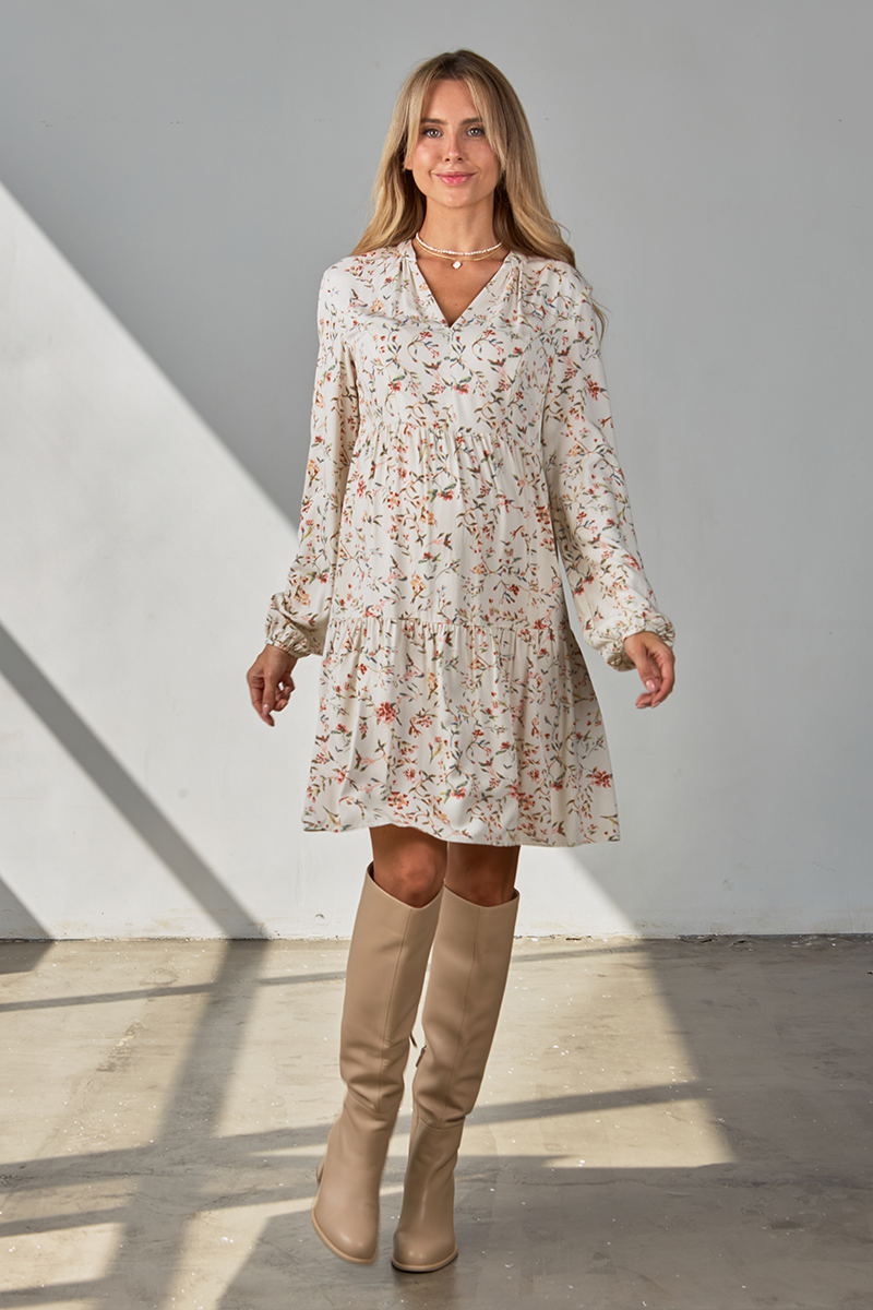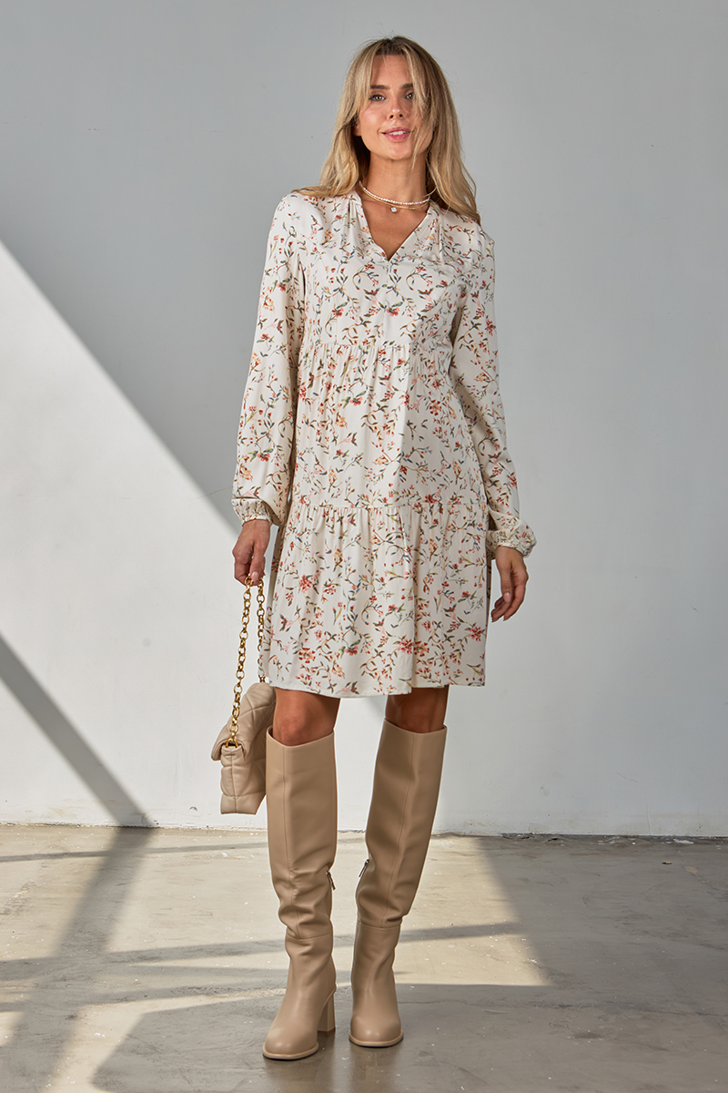 Силует: ліф із середньою свободою облягання та вільна ярусна спідниця.