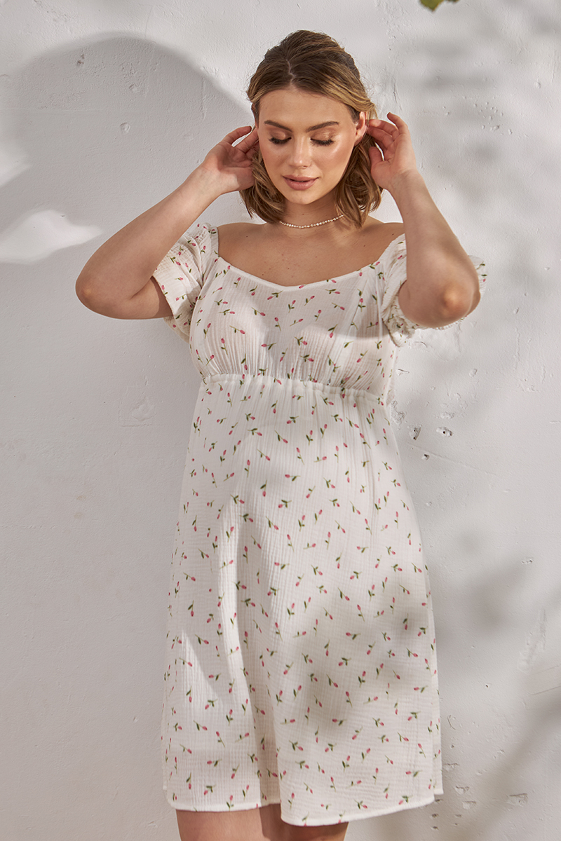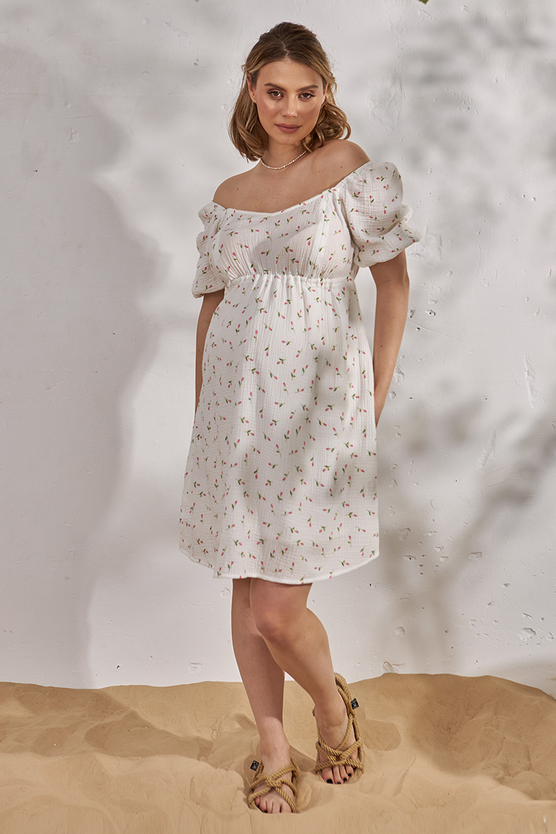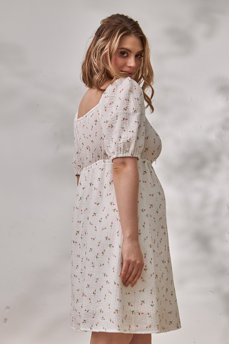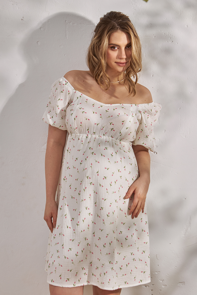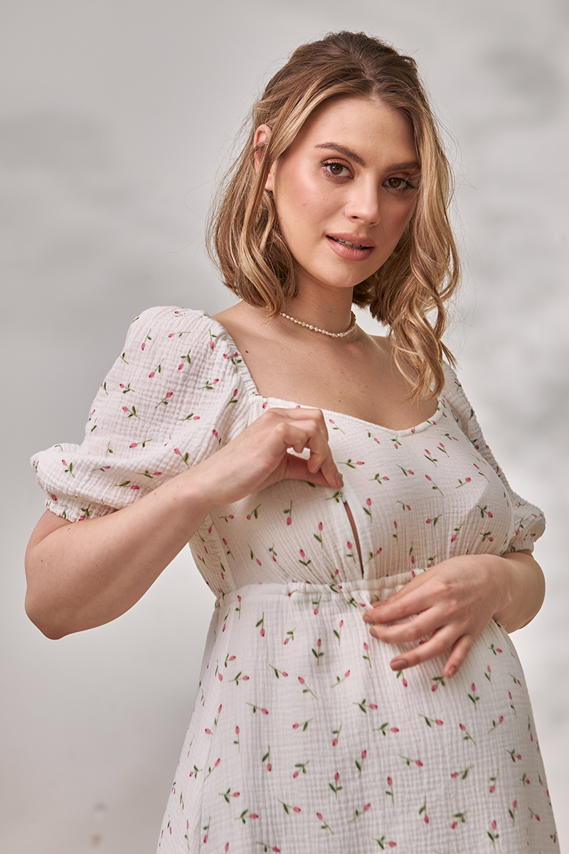 Сукня для вагітних та годуючих з акцентними рукавами-буфами.
