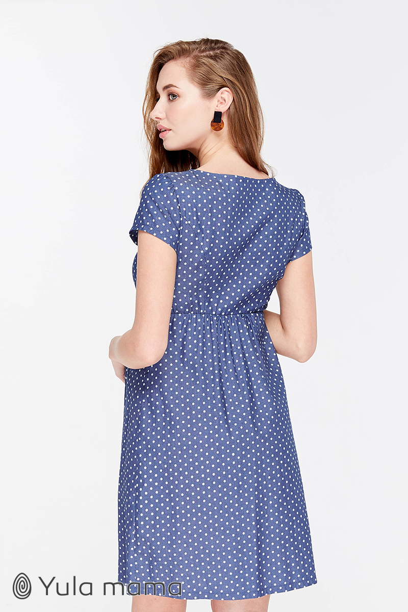 Платье для беременных и кормящих из тонкого джинса с принтом.