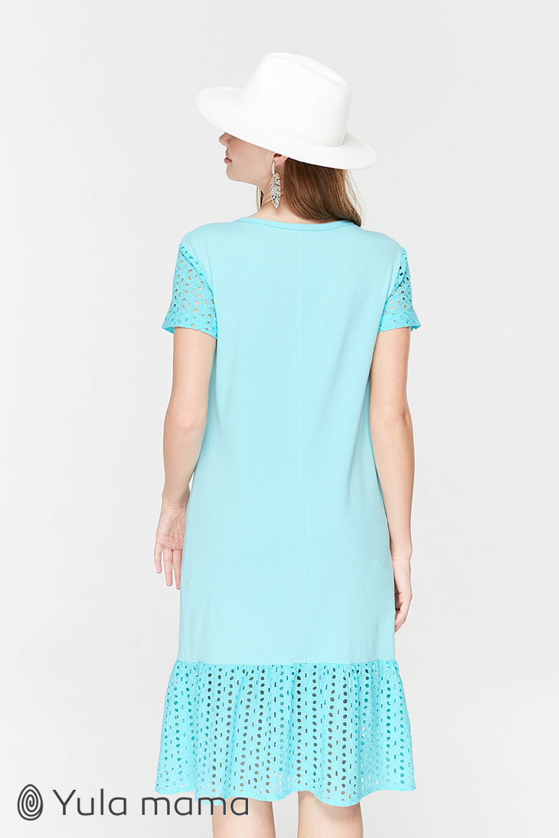 Сукня-футболка для вагітних і довжиною міді, що годують, з обробкою з бавовняного мережива.