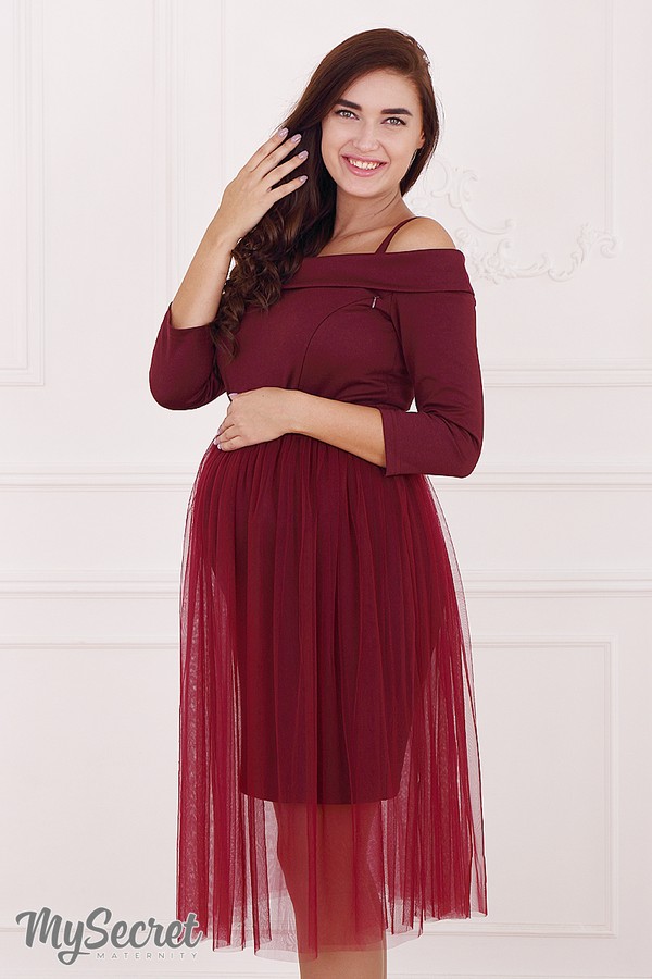 Стать королевой на любом торжестве можно без труда в нашем роскошном платье для беременных и кормящих мам! Платье выполнено из эластичного трикотажа джерси, благодаря чему платье подходит и на период беременности, и после. А благодаря скрытым в нагрудных рельефах молниям - еще и на период кормления. Облегающий фасон с открытыми плечами подчеркнет все ваши достоинства. А съемная юбка из фатина позволит вам составлять различные комбинации: носить ее под грудью, на талии, платье без юбки, и наконец юбку - под другие вещи (например с футболками и джинсами, по последнему слову моды). Цвет: бордовый.