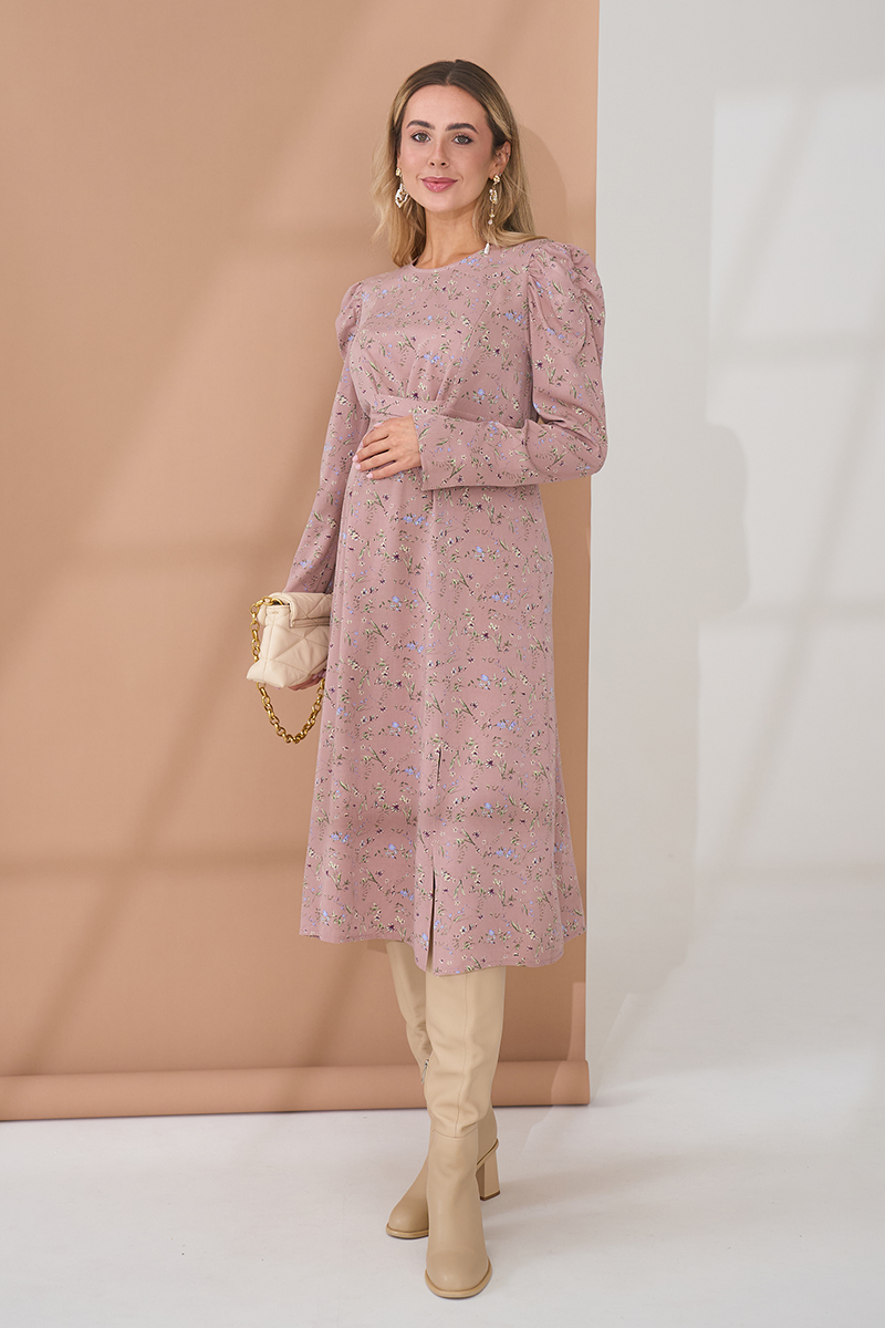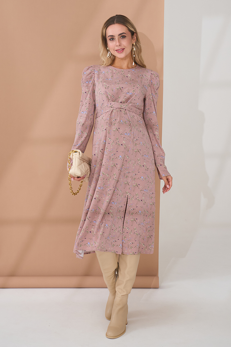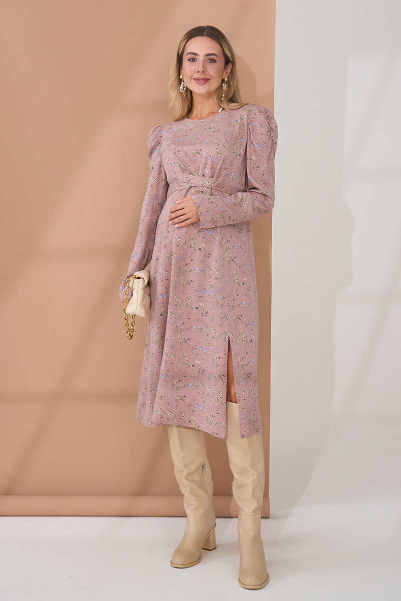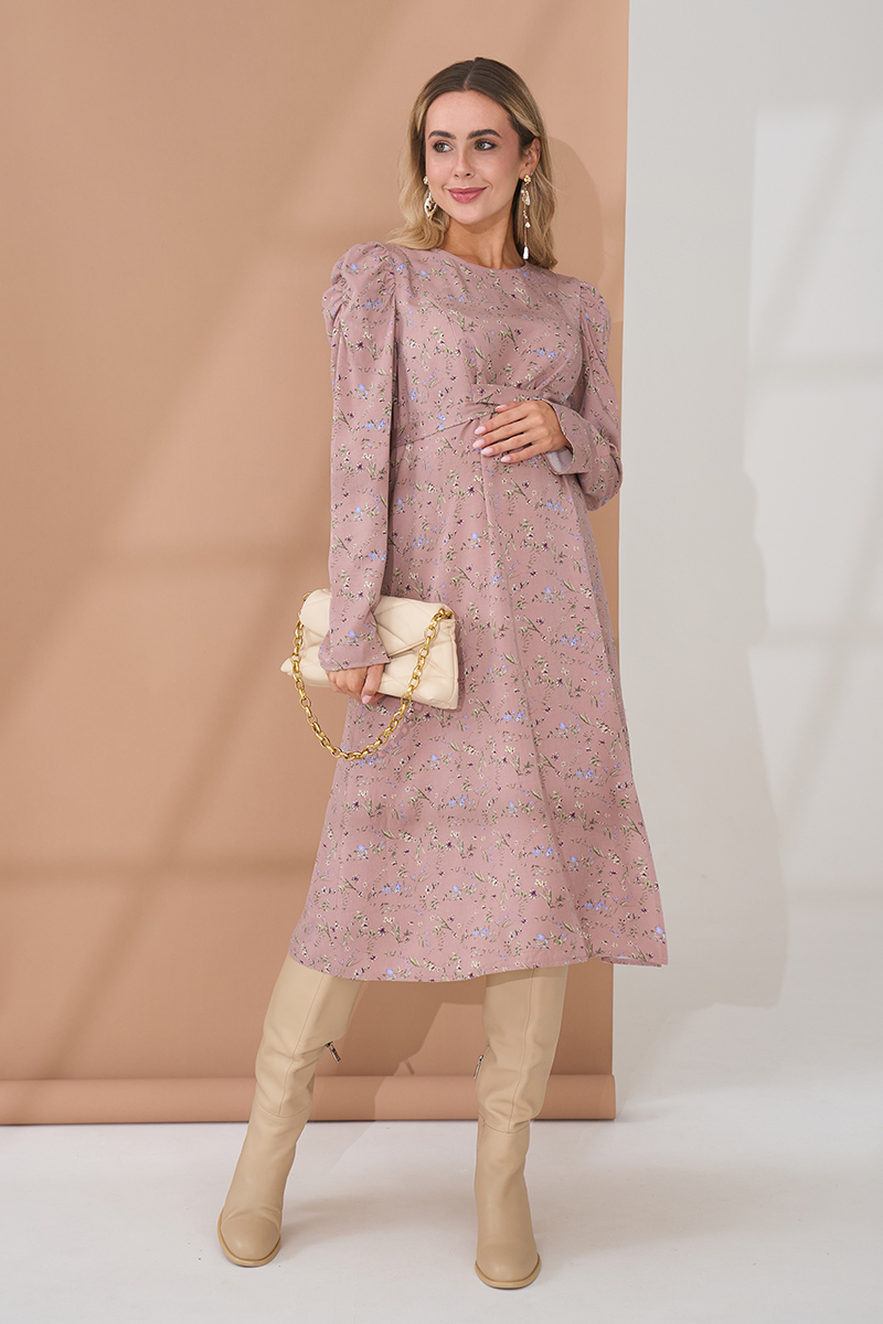 Жіночна сукня для вагітних і годуючих довжини міді зі штапеля.