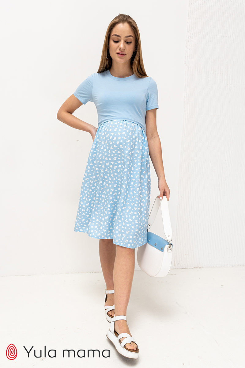Платье для беременных и кормящих с трикотажным лифом и штапельной юбкой.