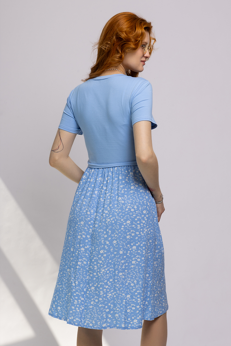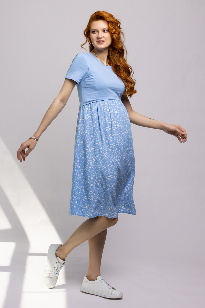 Сукня для вагітних та годуючих з трикотажним ліфом та легкою спідницею.