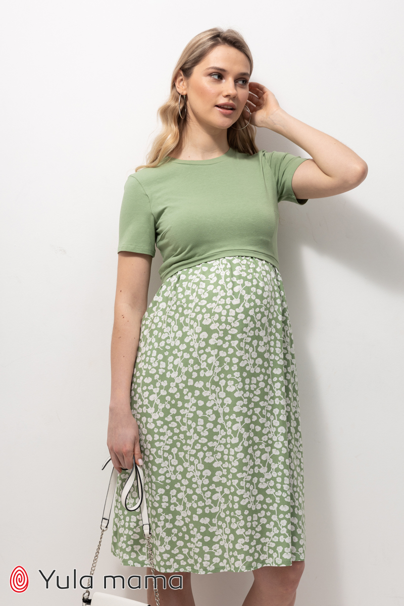 Сукня для вагітних та годуючих з трикотажним ліфом та легкою спідницею.