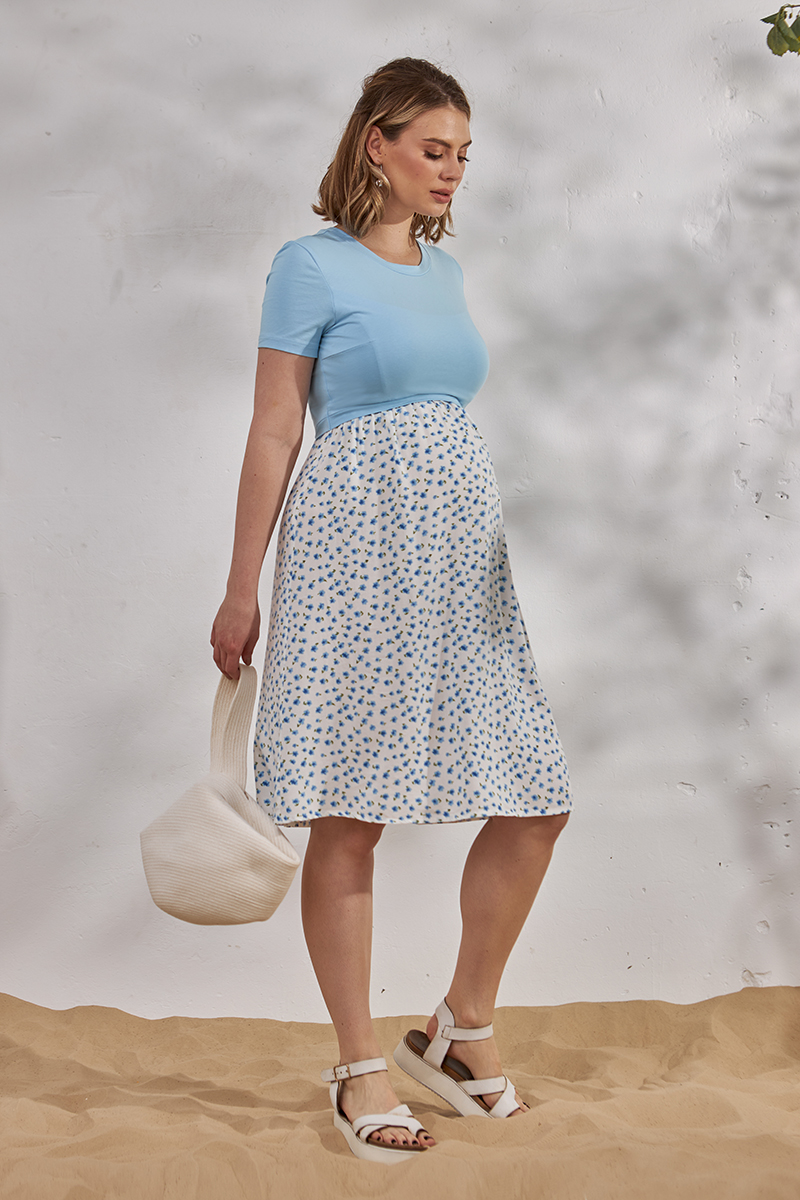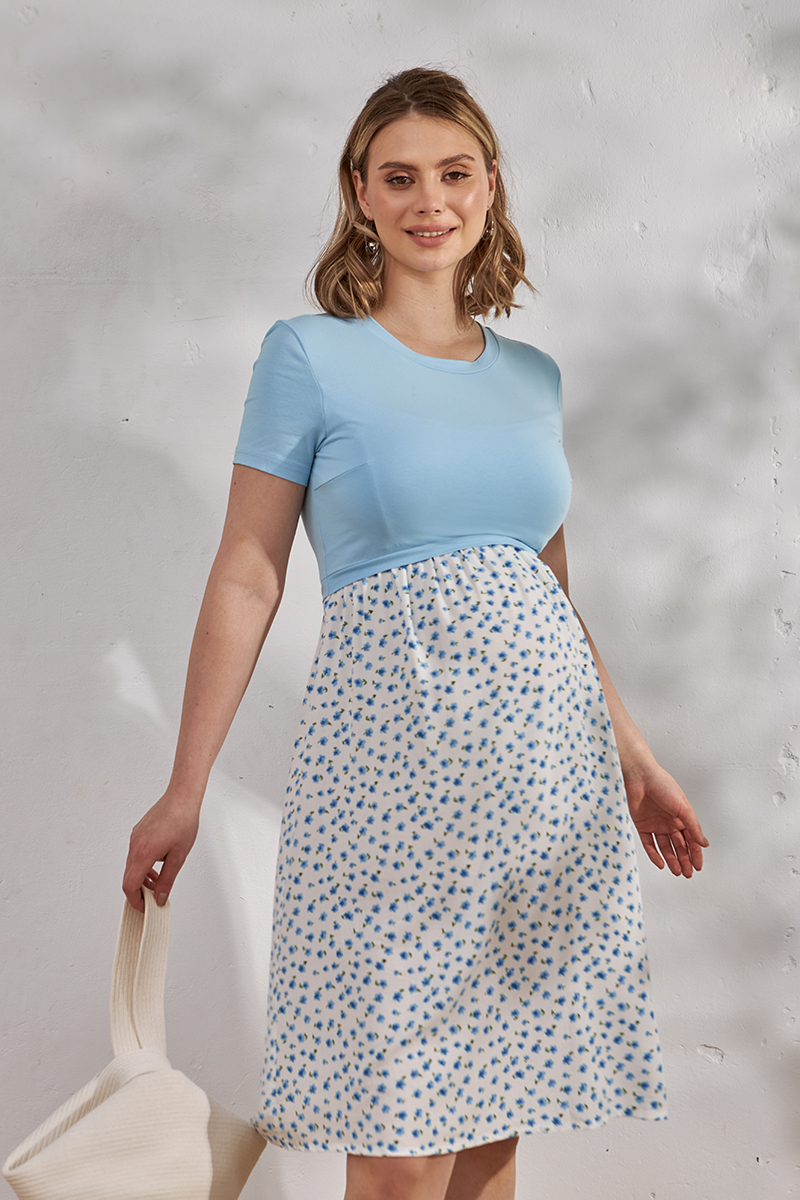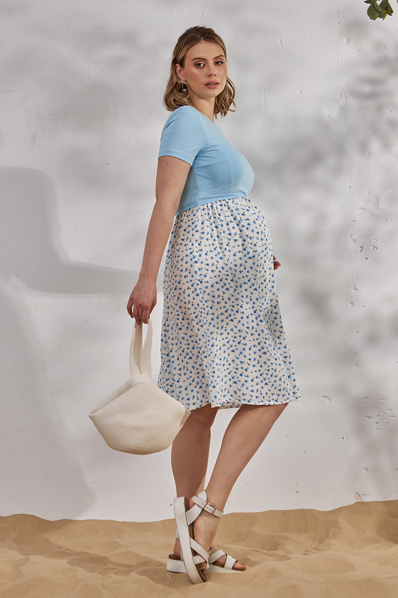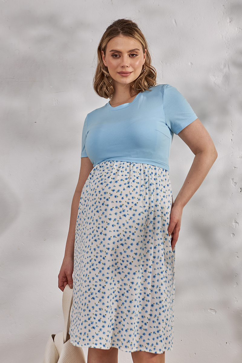 Сукня для вагітних та годуючих з трикотажним ліфом та легкою спідницею.