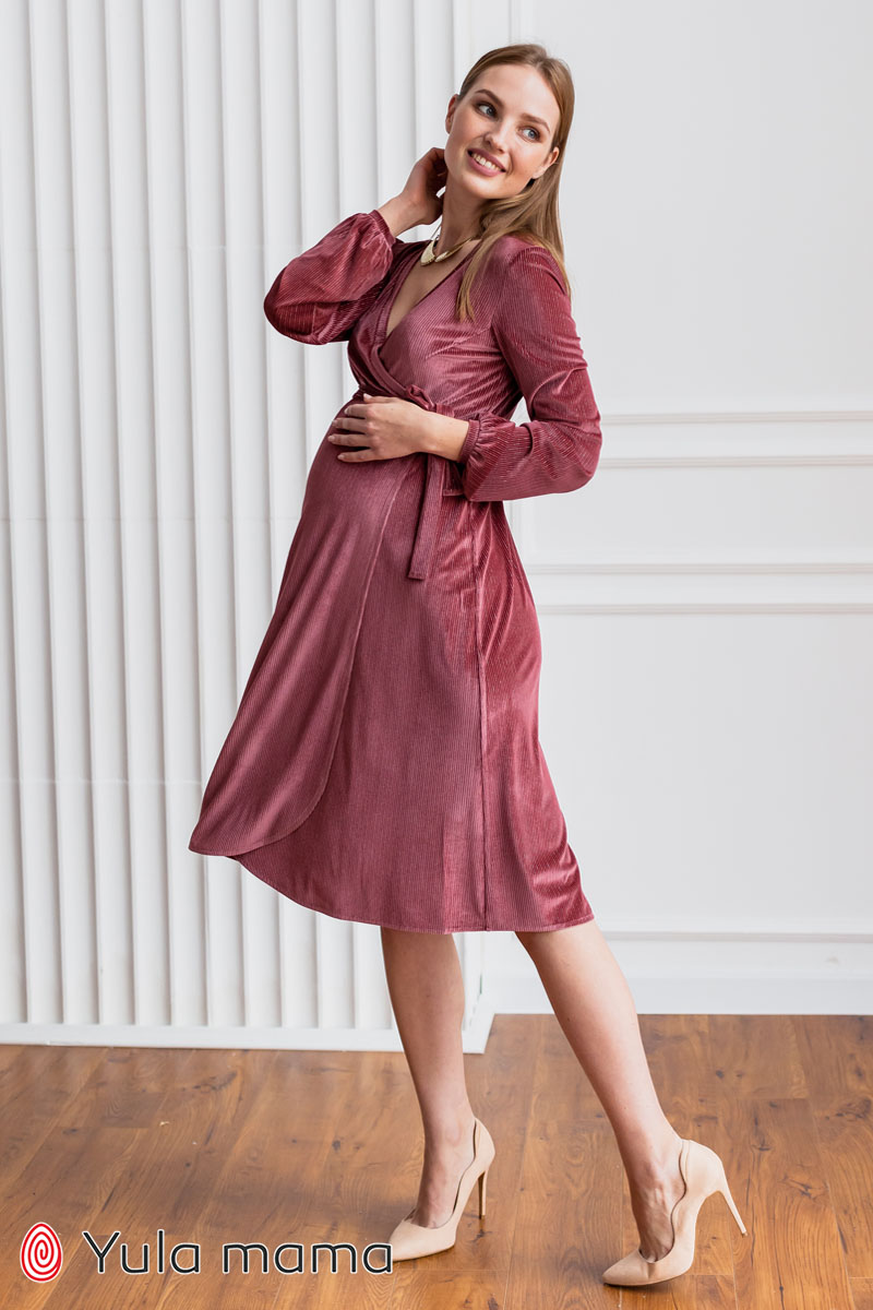 Ошатне плаття на запа́х для вагітних і годуючих з вельвету з люрексом.