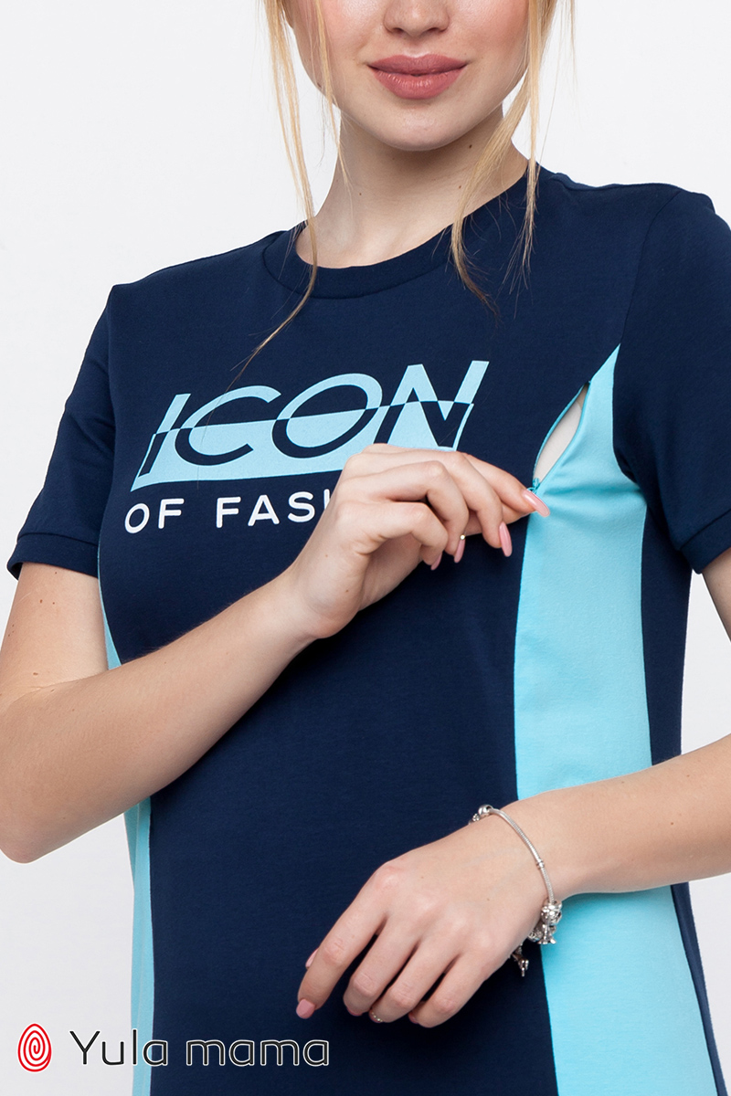 Трикотажне плаття-футболка для вагітних та годуючих з принтом на грудях.