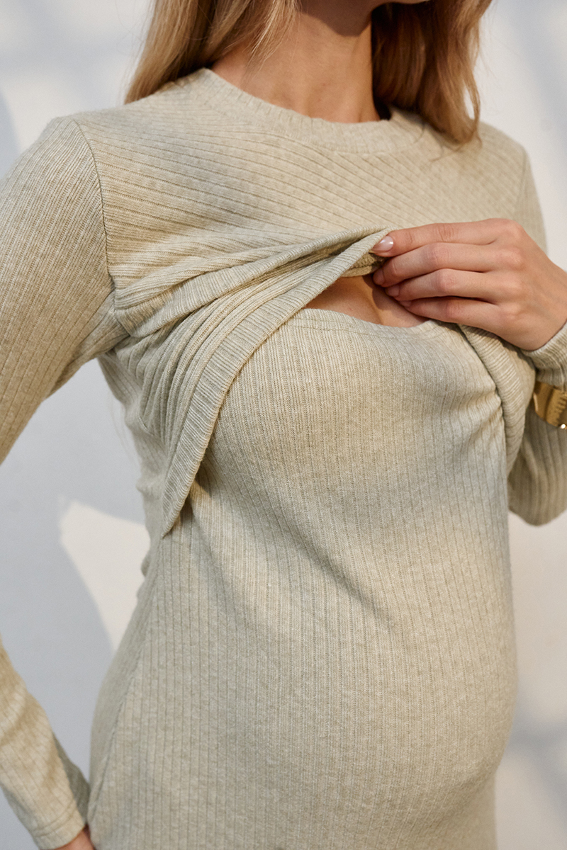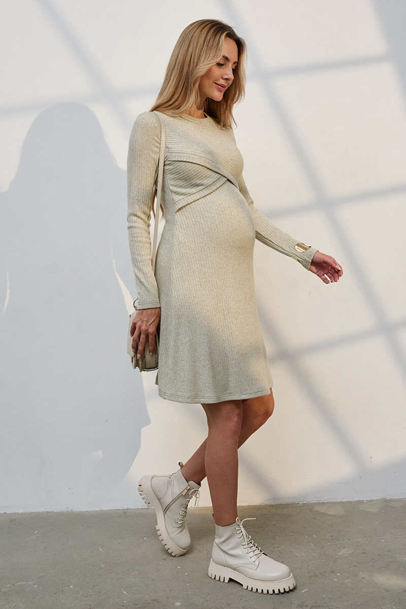 Жіночна сукня міді для вагітних і годуючих з теплого трикотажу.