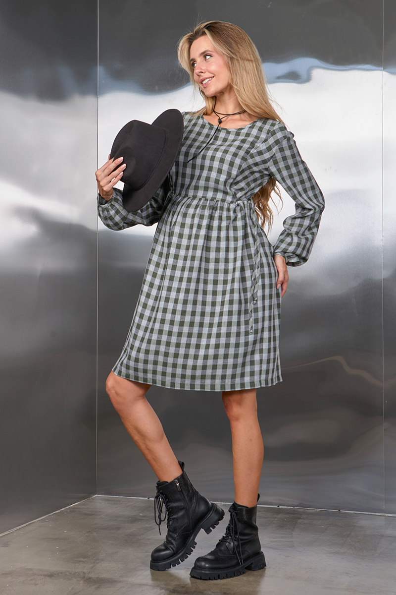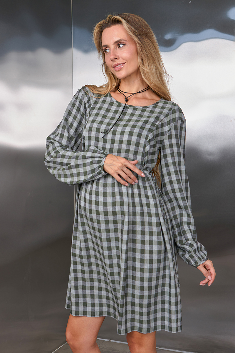 Сукня в клітку для вагітних та годуючих з плательної віскози.