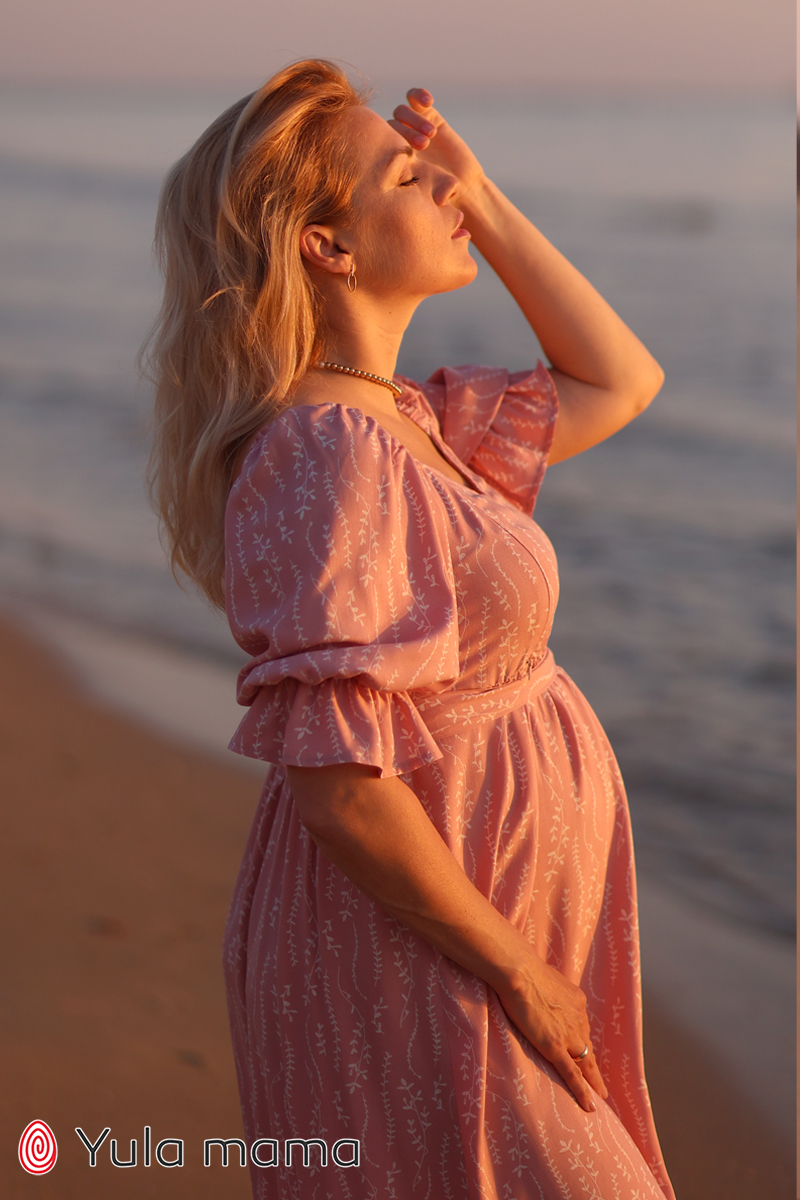 Сукня для вагітних та годуючих з акцентними рукавами-буфами.