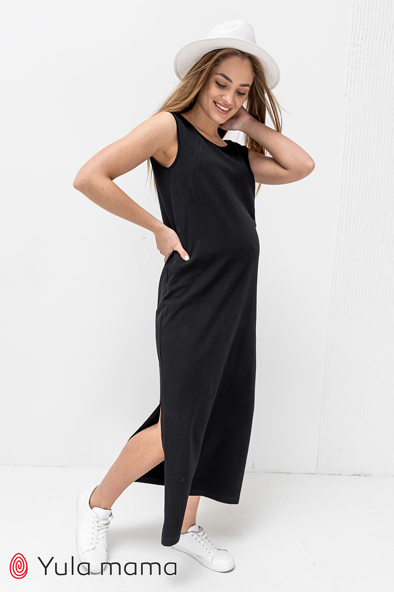 Сукня-майка для вагітних та годуючих з трикотажу з V-подібним вирізом по спинці.
