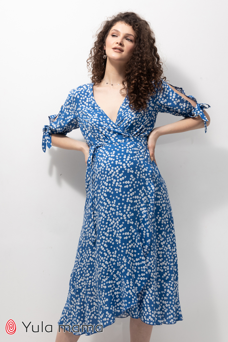 Жіноча сукня на запах з воланами для вагітних та годуючих зі штапеля.