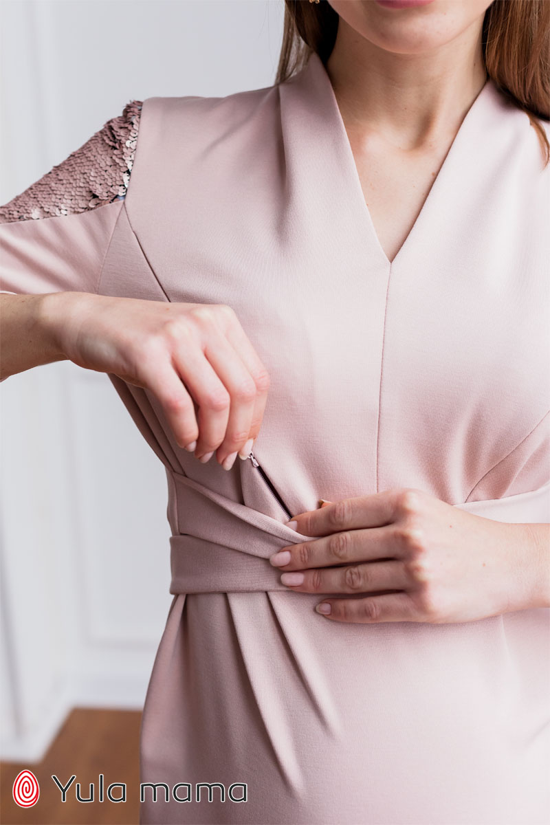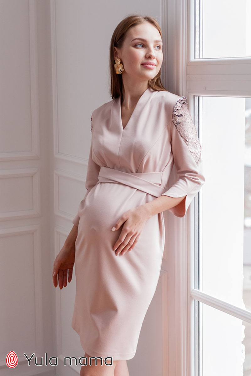 Нарядное платье для беременных и кормящих из трикотажа со вставками из пайеток.
