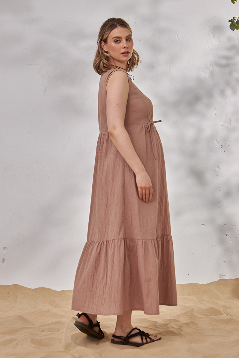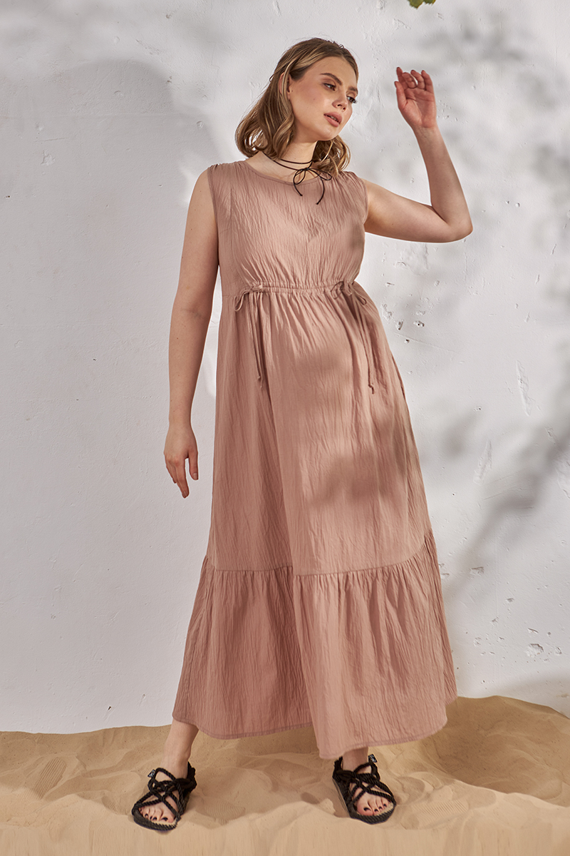 Довге плаття для вагітних та годуючих із жатої тканини.